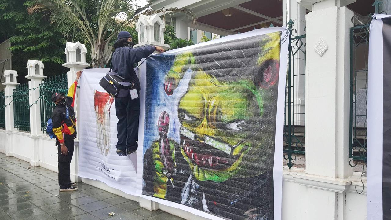 - ประมาณ 09.00 น กลุ่มมวลชนนำป้ายผ้าไวนิลนับสิบป้าย มาแขวนที่บนกำแพงรั้วหน้า มธ. ซึ่งเป็นภาพเขียนของศิลปิน และประชาชนทั่วไป ที่มีลักษณะการสะท้อน และเสียดสีการเมือง (อ่านข่าว - คลิกที่นี่)
