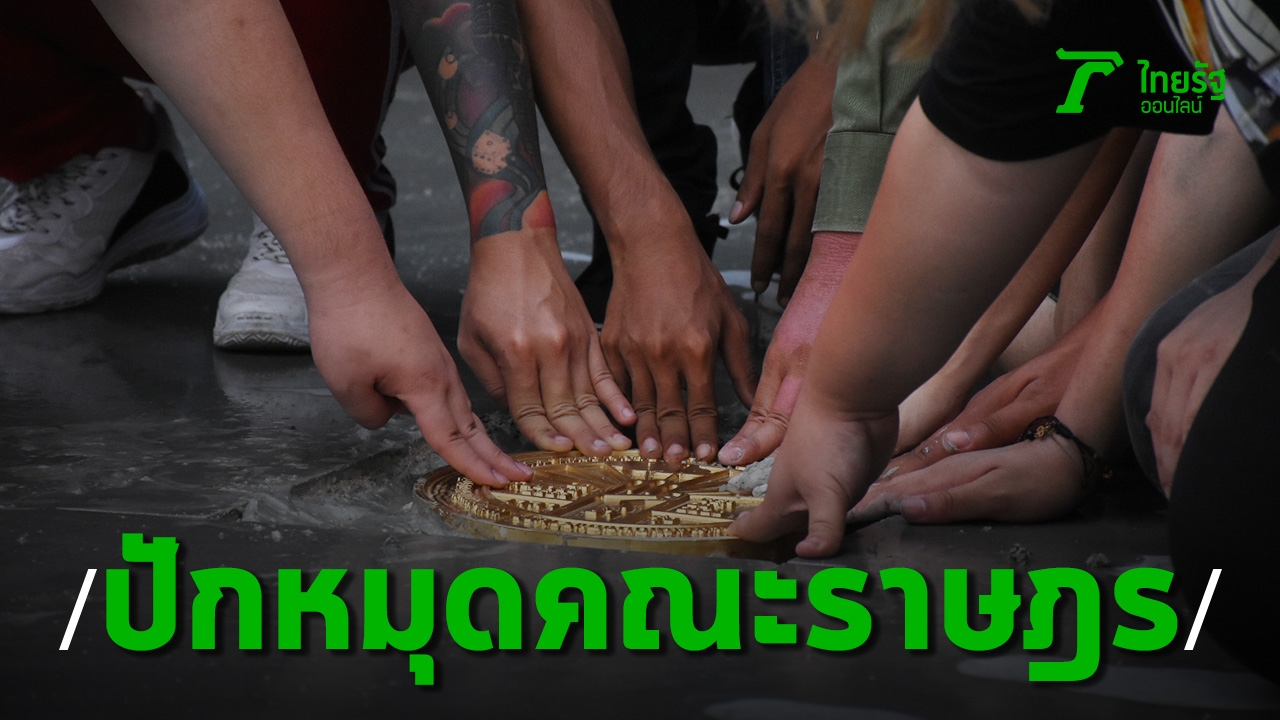 "เพนกวิน-อานนท์" นำผู้ชุมนุม ทำพิธีปักหมุดคณะราษฎร หมุดที่ 2 กลางท้องสนามหลวง โดยมีการกล่าวปฏิญาณ โดยให้แกนนำร่วมกันแตะที่หมุด และชู 3 นิ้ว พร้อมอ่านประกาศคณะราษฎร 2563 เพื่อเป็นสัญลักษณ์ให้ประสบความสำเร็จ