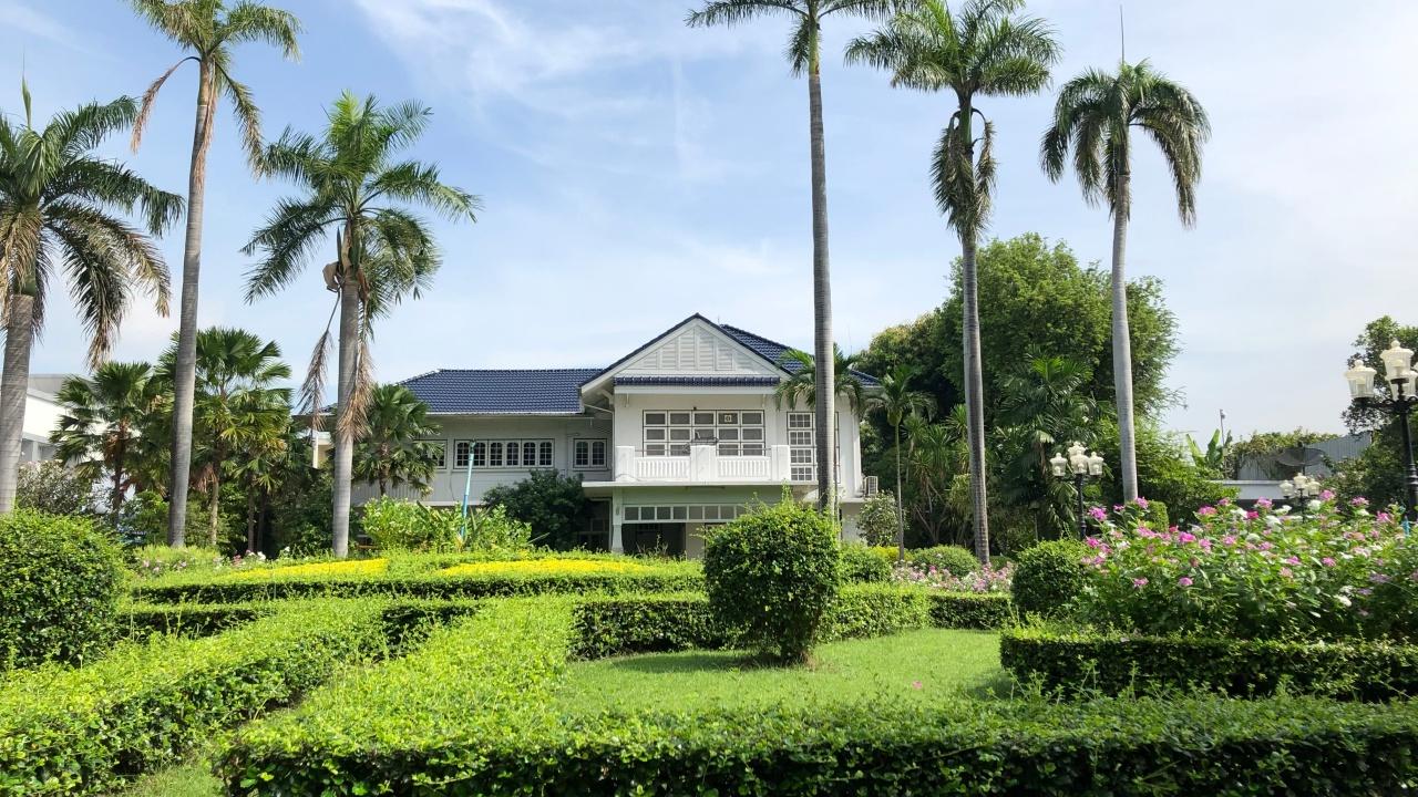 ทั้งนี้ หากมองจากถนนด้านหน้าเข้าไป จะมีประตูทางเข้าออก 2 ด้าน ซ้ายและขวา ตรงกลางปลูกต้นไม้สูงคล้ายกำแพง เมื่อก้าวเท้าผ่านประตูเข้าไปจะพบสนามหญ้าและสวน พร้อมกับบ่อน้ำขนาดใหญ่ เบื้องหลังเป็นบ้านปูนสีขาว ซึ่งเป็นสถานที่พัก
