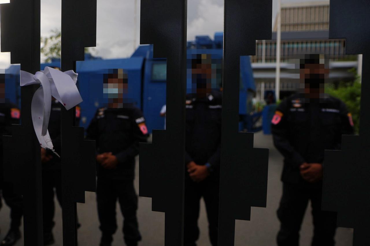 ประมวลภาพ คณะประชาชนปลดแอกและกลุ่มฟื้นฟูประชาธิปไตย ชุมนุมหน้ารัฐสภา สังเกตการณ์การอภิปรายญัตติร่างแก้ไขรัฐธรรมนูญ ด้านแกนนำสลับกันขึ้นปราศรัย ผูกโบขาว แสดงออกเชิงสัญลักษณ์