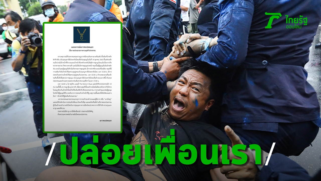 เยาวชนปลดแอกขอประณามทุกการกระทำของตำรวจและผู้สั่งการ หรือ “นายใหญ่” และขอให้เร่งดำเนินการปล่อยตัวเพื่อนเราโดยเร็วที่สุด และจะต้องคืนสิทธิเสรีภาพของประชาชนผู้เป็นเจ้าของอธิปไตยในการชุมนุมทางการเมืองโดยปราศจากการใช้กำลัง ความรุนแรง และคดีความ