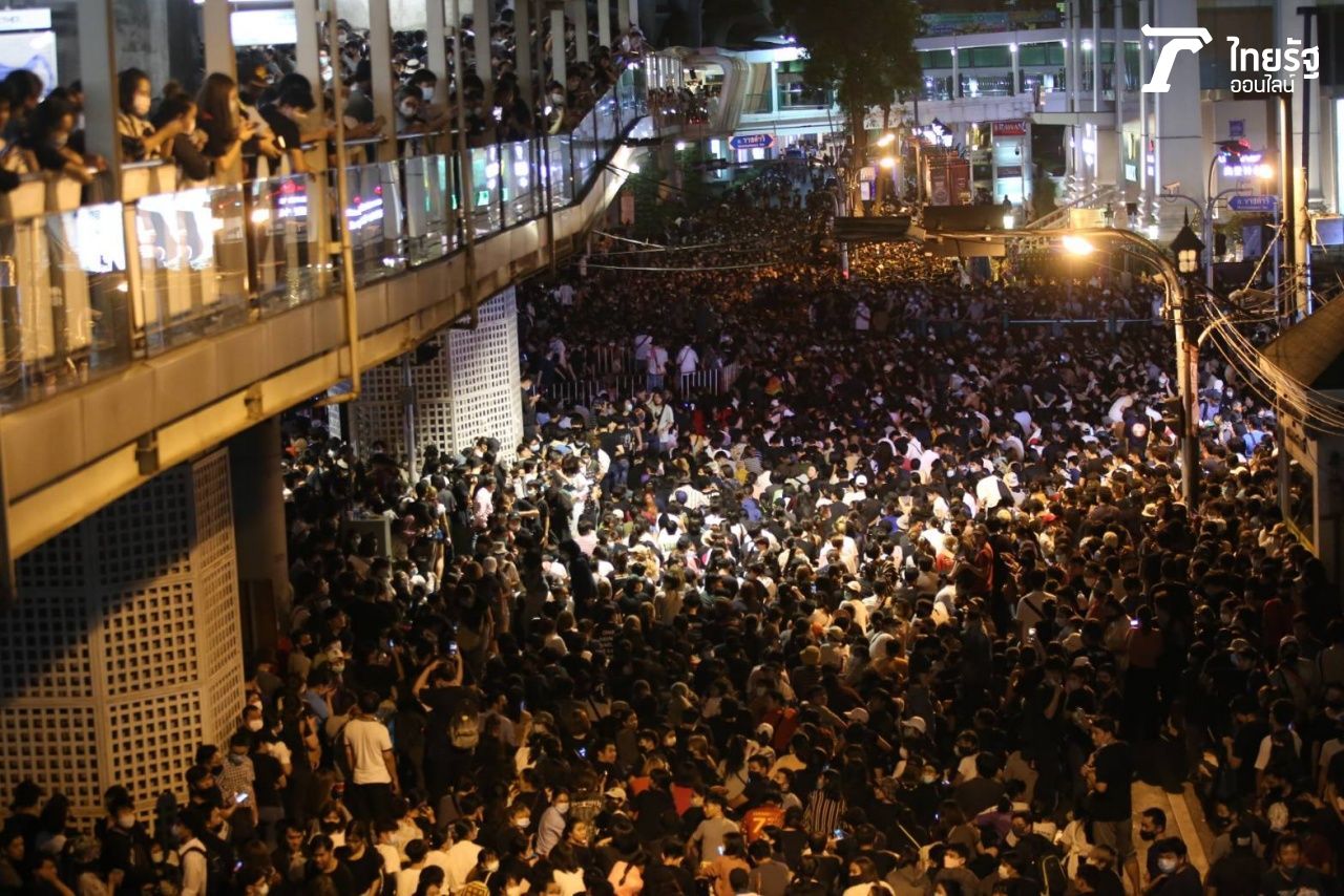 เมื่อเวลา 21.30 น. วันที่ 15 ต.ค. 2563 ผู้สื่อข่าวรายงานบรรยากาศการชุมนุม บริเวณแยกราชประสงค์ ว่า แกนนำยังคงสลับกันขึ้นปราศรัยอย่างต่อเนื่อง โดยย้ำว่า การมาชุมนุมในวันนี้เป็นการชุมนุมอย่างสงบ และอยากให้รัฐบาลฟังเสียงของประชาชน อย่างไรก็ตาม มีรายงานว่า แกนนำได้ประกาศว่า จะมีการชุมนุมถึงเวลา 22.00 น. และจะได้ขอให้ผู้ชุมนุมเดินทางกลับ