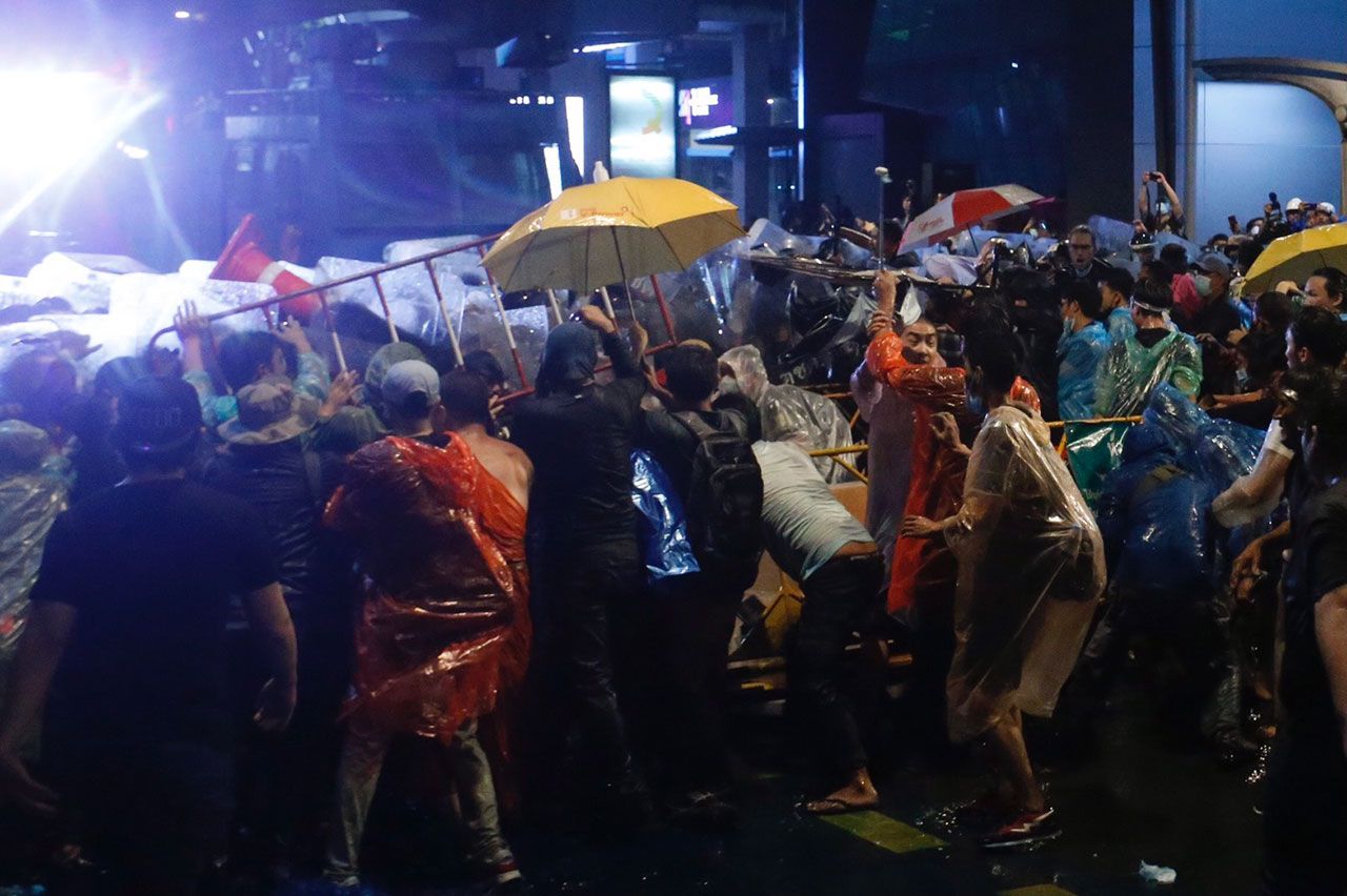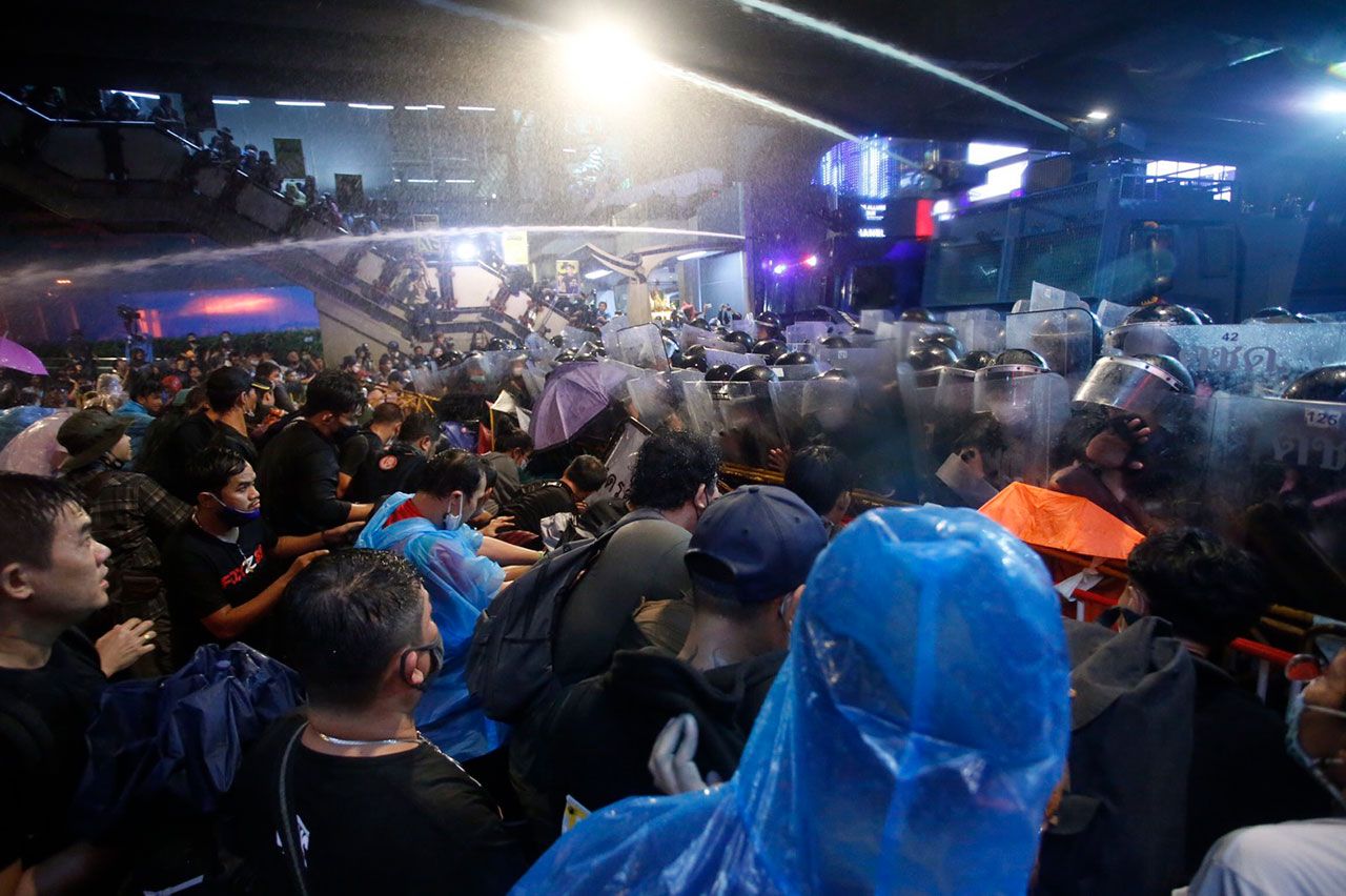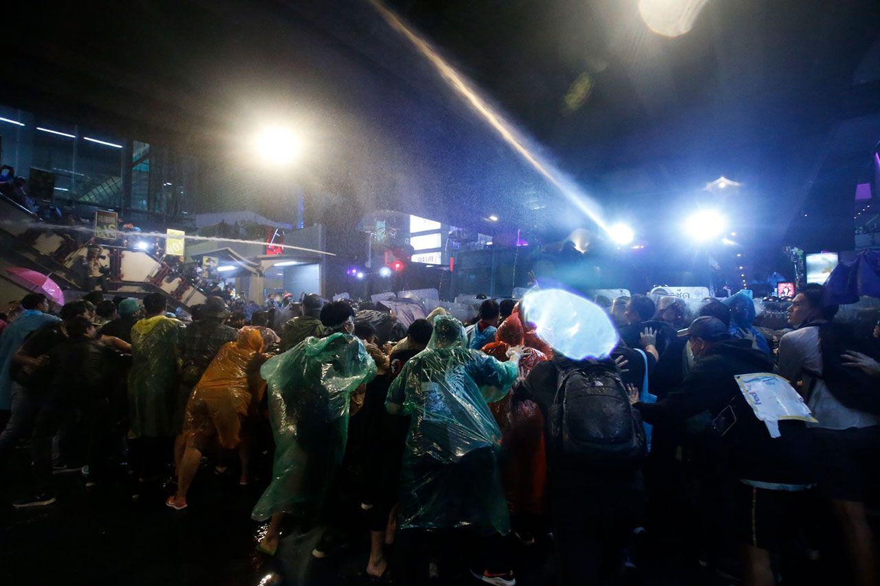 วันที่ 16 ต.ค. เวลา 19.10 น. เจ้าหน้าที่ชุดควบคุมฝูงชน ประมาณ 2 กองร้อย กลับเข้ามาตั้งแนวในพื้นที่อีกครั้ง ก่อนเดินเข้าประชิดกลุ่มผู้ชุมนุม และนำแผงกั้นของผู้ชุมนุมออก และทำการฉีดน้ำไปเรื่อยๆ ทำให้กลุ่มผู้ชุมนุมถอยร่นออกไปด้านหลัง