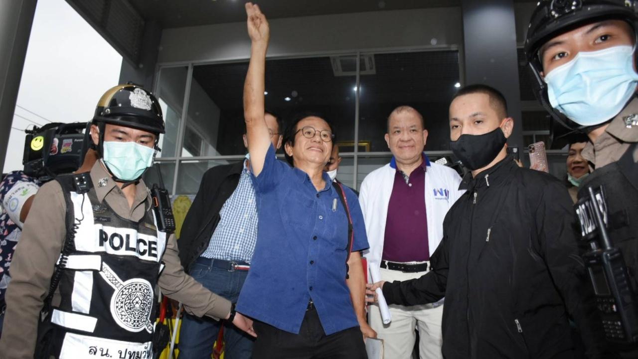 คุมตัว หมอทศพร เสรีรักษ์ ไป ตชด.ภ.1 เจ้าตัวยัน ไม่รู้สึกกังวล ยัน ทำไปด้วยความบริสุทธิ์ใจ เชื่อ พรุ่งนี้ศาลจะให้ประกันตัว ด้าน ตร.สน.ปทุมวัน แจ้งข้อหาผิด พ.ร.ก.ฉุกเฉิน