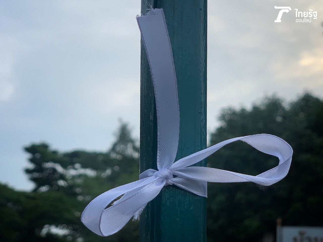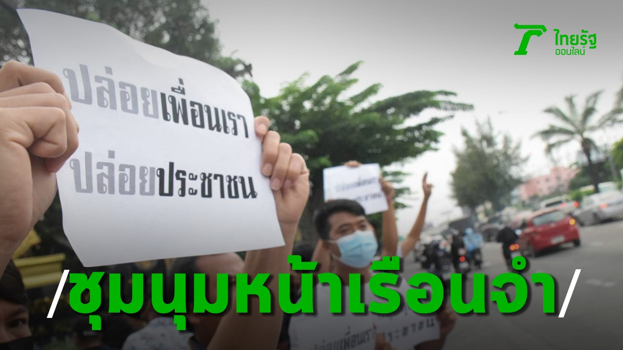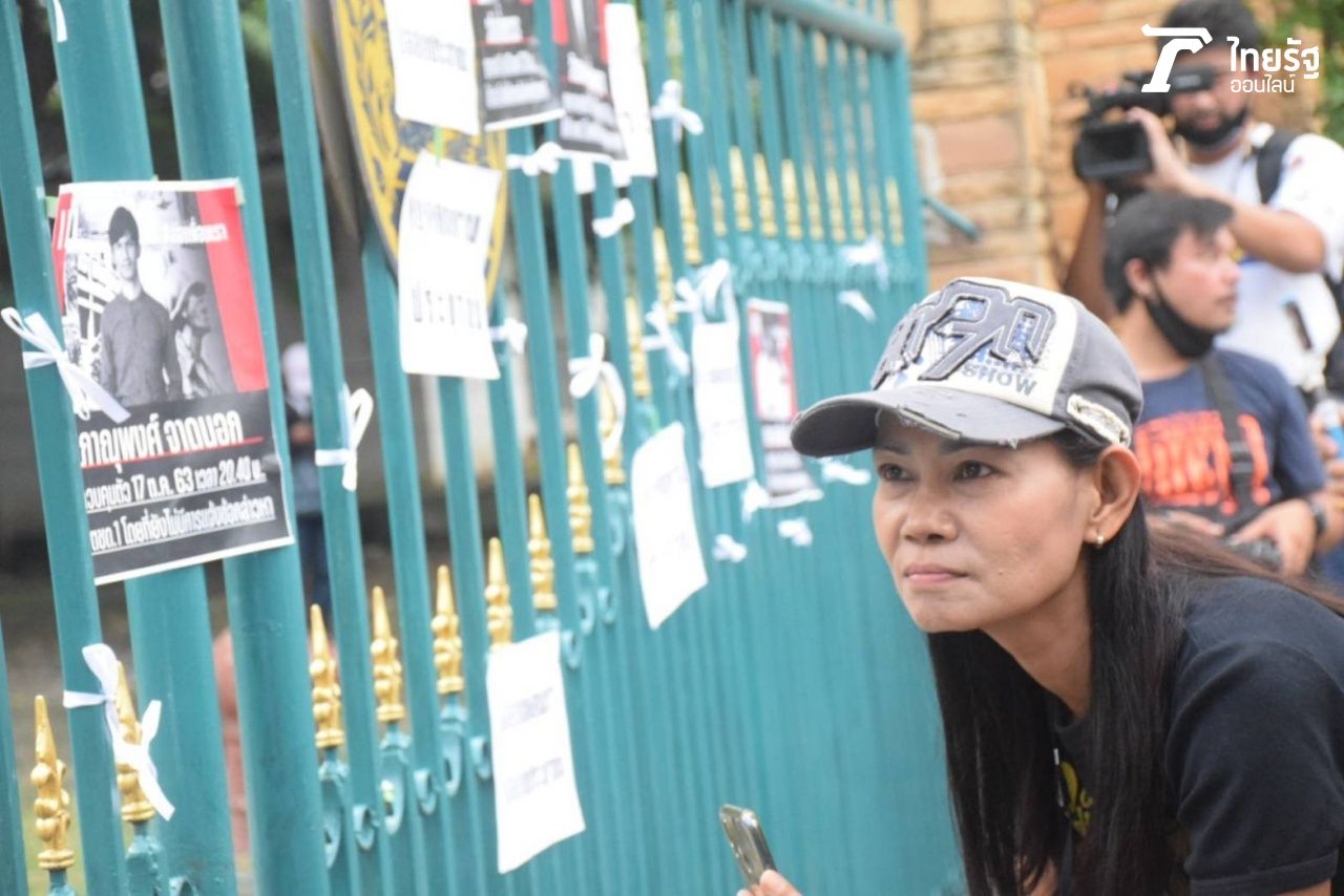 ผู้ชุมนุมทยอยมาหน้าเรือนจำคลองเปรม ผูกริบบิ้นขาว-ติดภาพมวลชนที่ถูกควบคุมตัว ที่ประตูรั้ว เตรียมปราศรัย 3 ข้อเรียกร้อง พร้อมวางกุหลาบ
