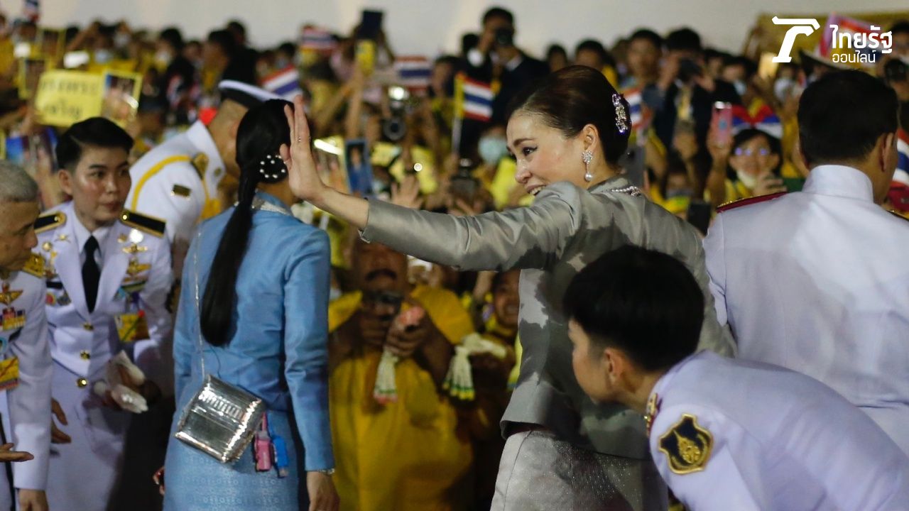 "ในหลวง-พระราชินี" ทรงมีพระราชปฏิสันถาร กับประชาชนทุกหมู่เหล่าที่มาเฝ้ารอรับเสด็จอย่างเนืองแน่น ตลอดเส้นทางถนนหน้าพระลาน จากประตูวิเศษไชยศรี ถึงถนนราชดำเนินใน