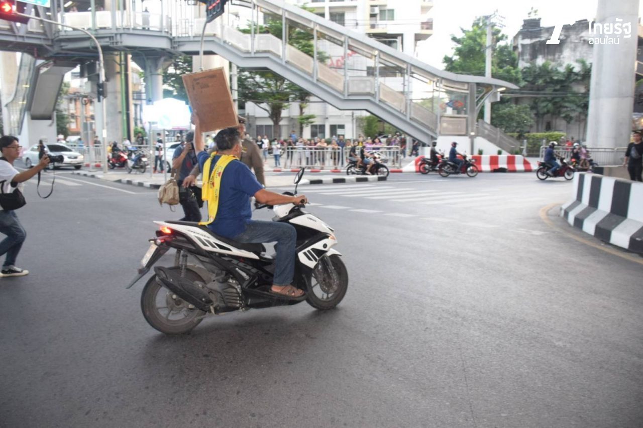 เวลา 17.05 น. มีชายคนหนึ่งขี่รถจักรยานยนต์เข้ามาท่ามกลางมวลชน ชูพระบรมฉายาลักษณ์รัชกาลที่ 9 แล้วพูดว่า อยู่อย่างจงรัก ตายอย่างภักดี ก่อนที่การ์ดอาสาจะเข้าไปเจรจา และระบุว่าจะต้องไม่เกิดความรุนแรง ก่อนจะเชิญออกนอกพื้นที่ โดยชายคนดังกล่าวยอมขี่รถจักรยานยนต์ออกไป ต่อมามีการนำรถกระบะติดเครื่องขยายเสียงขยับลงพื้นที่กลางสี่แยกท่าพระ ทำให้ถนนจรัญสนิทวงศ์ช่วงเลี้ยวขวาไปถนนเพชรเกษม และช่วงมุ่งหน้าตรงไปรัชดา-ท่าพระ ถูกปิดไปโดยปริยาย.