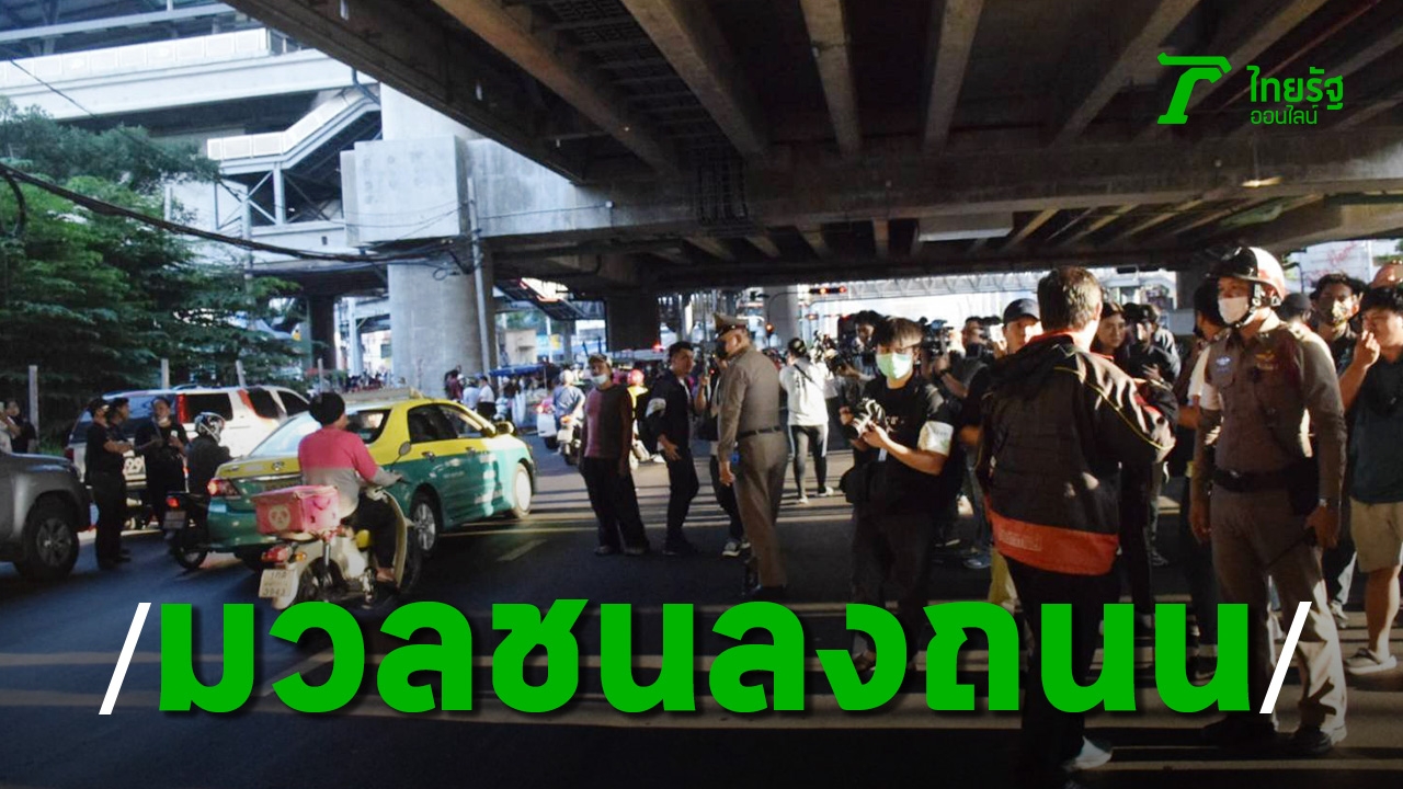 ประชาชนทยอยเข้าพื้นที่แยกท่าพระ ปิดถนนจรัญสนิทวงศ์ ฝั่งมุ่งหน้ารัชดา-ท่าพระ หวิดวุ่น คนบุกเดี่ยวตะโกนป้องสถาบัน การ์ดอาสาผลักดันออกนอกพื้นที่ ไร้ปะทะ