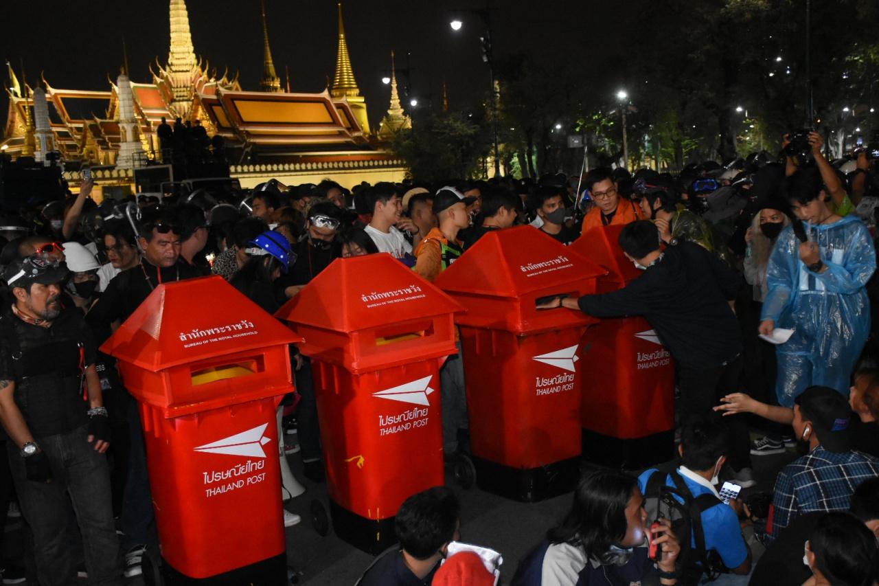 เมื่อเวลา 20.40 น. ผู้สื่อข่าวรายงานว่า ตัวแทนราษฎรอ่านแถลงการณ์บริเวณหน้าตู้ไปรษณีย์สีแดง จำนวน 4 ตู้ ที่ทำมาให้ราษฎรได้ยื่นจดหมายเปิดผนึกที่ตัวเองเขียนขึ้น โดยเป็นการประกาศผ่านรถขยายเสียง ซึ่งผู้ที่พูดไม่ได้อยู่ในบริเวณดังกล่าว