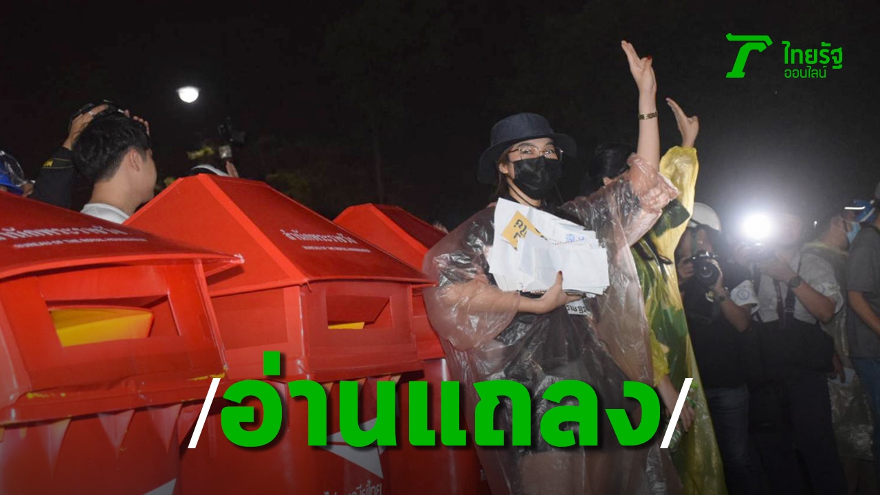 ตัวแทนราษฎรอ่านแถลงการณ์ ก่อนให้ผู้ชุมนุมทยอยหย่อนจดหมายลงตู้ ปณ. ยืนยันไม่ปักหลักค้างคืนในพื้นที่