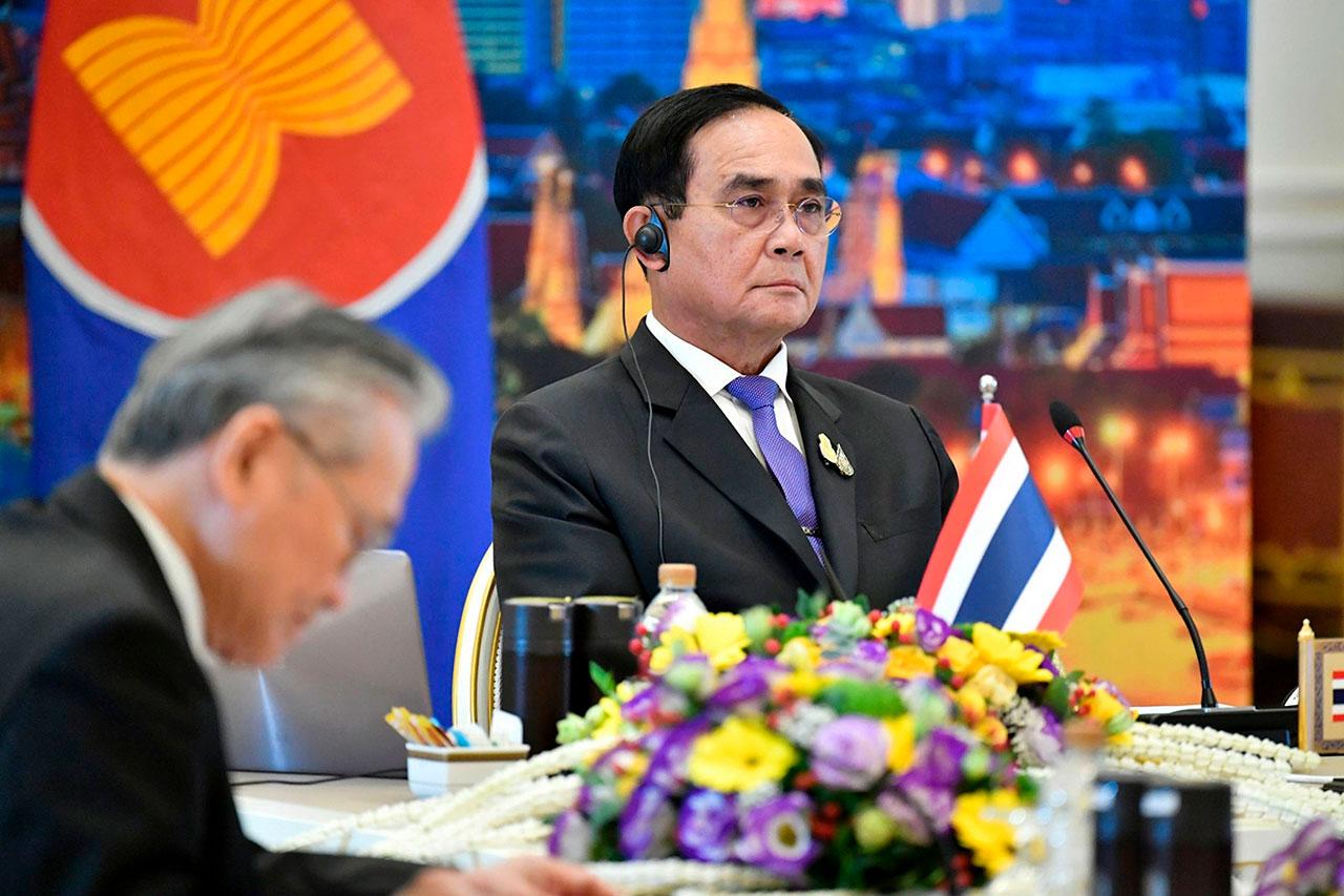 ส่วนความเคลื่อนไหวการประชุมสุดยอดอาเซียนครั้งที่ 37 และการประชุมที่เกี่ยวข้องทางไกลผ่านระบบวิดีโอคอนเฟอเรนซ์ ที่สาธารณรัฐสังคมนิยมเวียดนามเป็นเจ้าภาพ เมื่อเวลา 09.30 น. ที่ตึกภักดีบดินทร์ ทำเนียบรัฐบาล พล.อ.ประยุทธ์ จันทร์โอชา นายกฯและ รมว.กลาโหม ร่วมประชุมผู้นำกรอบความร่วมมือลุ่มน้ำโขงกับสาธารณ รัฐเกาหลี (เกาหลีใต้) ครั้งที่ 2 มีผู้นำเวียดนาม กัมพูชา ลาว เมียนมา ไทย และนายมุน แช-อิน ประธานาธิบดีเกาหลีใต้เข้าร่วม จากนั้นเวลา 11.00 น. พล.อ.ประยุทธ์ ร่วมการประชุมผู้นำกรอบความร่วมมือลุ่มน้ำโขงกับญี่ปุ่นครั้งที่ 12 นายซูกะ โยชิฮิเดะ นายกฯ ญี่ปุ่น เข้าร่วม โดย พล.อ.ประยุทธ์กล่าวว่า ควรเร่งดำเนินการด้านเศรษฐกิจอนุภูมิภาคลุ่มน้ำโขงให้รวดเร็วและยั่งยืนโดยใช้วิกฤติโควิด-19 วางรากฐานทางเศรษฐกิจใหม่ และยกระดับมาตรฐานในทุกด้าน