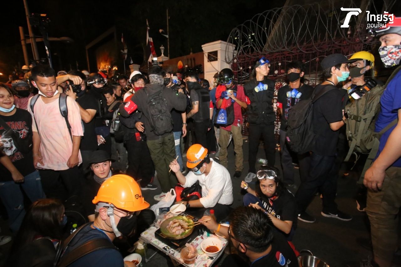 วันที่ 18 พฤศจิกายน 2563 ผู้สื่อข่าวรายงานว่า หลังจากกลุ่มราษฎรได้นัดรวมตัวบริเวณแยกราชประสงค์เพื่อเดินขบวนไปยังสำนักงานตำรวจแห่งชาติ โดยล่าสุด เมื่อเวลาประมาณ 18.40 น. พบว่ากลุ่มผู้ชุมนุมได้จัดกิจกรรมกินหมูกระทะ ปิ้งย่าง ที่หน้าสำนักงานตำรวจแห่งชาติ