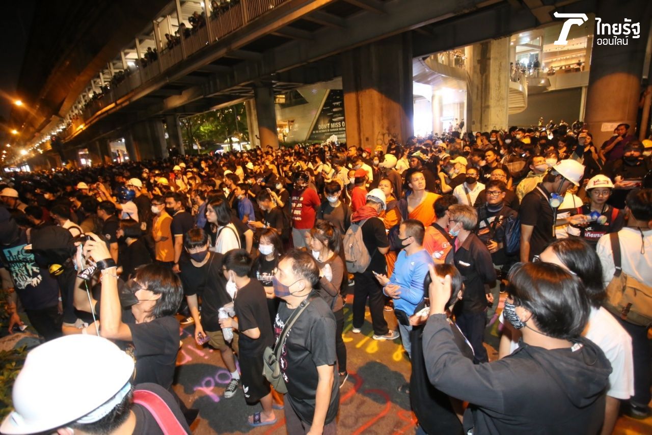 เปิดภาพกลุ่มผู้ชุมนุมราษฎร "ม็อบ 18 พฤศจิกา" เดินขบวนจากแยกราชประสงค์ จัดกิจกรรมปิ้งย่าง "หมูกระทะ" หน้าสำนักงานตำรวจแห่งชาติ