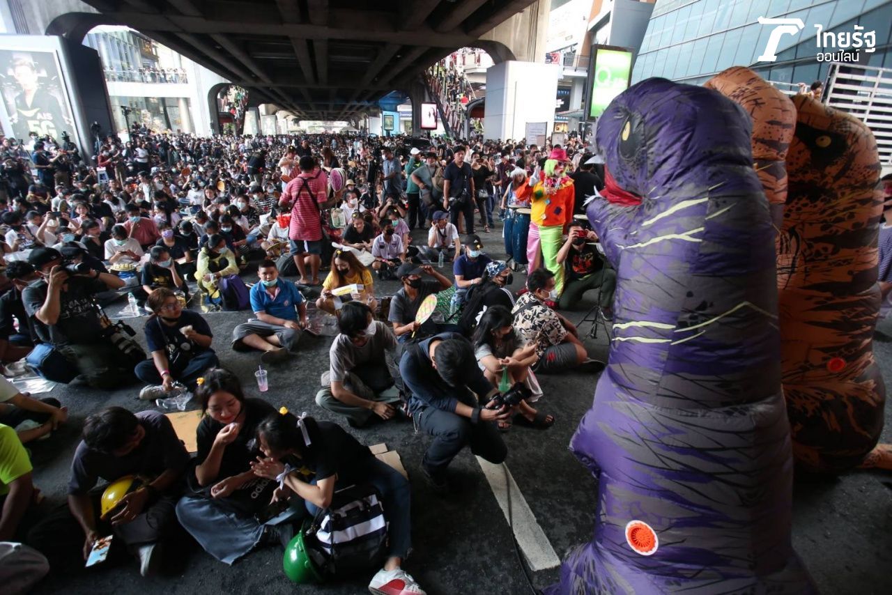 เมื่อเวลา 17.20 น. วันที่ 21 พ.ย. 2563 ผู้สื่อข่าวรายงานบรรยากาศการชุมนุมของกลุ่ม "นักเรียนเลว" ซึ่งย้ายสถานที่จากแยกราชประสงค์ มายังถนนพระรามที่ 1 ใต้รถไฟฟ้าบีทีเอสสถานีสยาม โดยพบว่ามีผู้เข้าร่วมกิจกรรม "บ๊ายบายไดโนเสาร์" ในวันนี้ โดยในงานมีมาสคอตไดโนเสาร์ และลูกบอลลมที่เป็นสัญลักษณ์ของอุกกาบาตที่จะพุ่งชนความล้าหลัง โดยนำมาใช้เป็นการแสดงออกเชิงสัญลักษณ์.