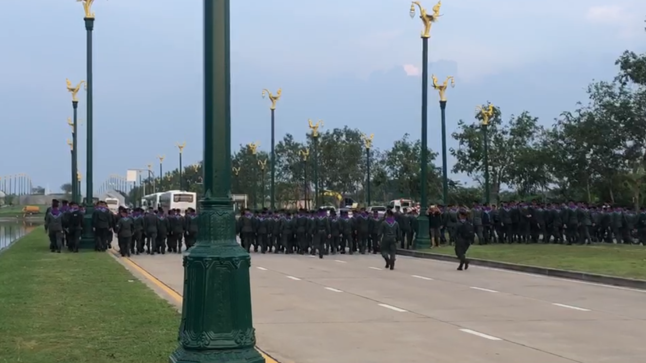 โดยมวลชนการ์ดอาสาอาชีวะและการ์ดเสื้อแดง เริ่มทำการปิดถนนอุทยานตบอดทั้งเส้น ตั้งแต่ฝั่งถนนพุทธมณฑลสาย 3 และสาย 4 เพื่อใช้เป็นพื้นที่ชุมนุม ก่อนนำรถบรรทุก 6 ล้อทยอยขนอุปกรณ์เข้าเริ่มติดตั้งเวทีปราศรัยใหญ่ และติดตั้งเต้นท์กิจกรรมต่างๆ ที่บริเวณถนนอุทยานฝั่งขาออก ฝั่งถนนพุทธมณฑลสาย 4 สำหรับจุดตั้งเวทีของกลุ่มราษฎรครั้งนี้ เป็นจุดที่ใกล้กับการตั้งเวทีใหญ่ของ นปช. เมื่อการชุมนุมครั้งสุดท้ายปี 57 ก่อน ถูกสลายการชุมนุมในวันรัฐประหาร