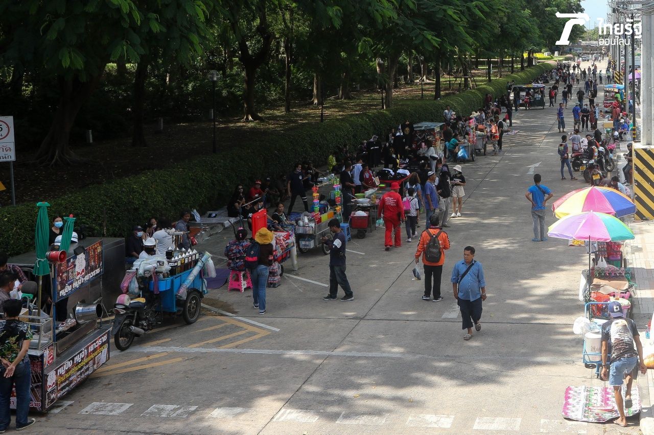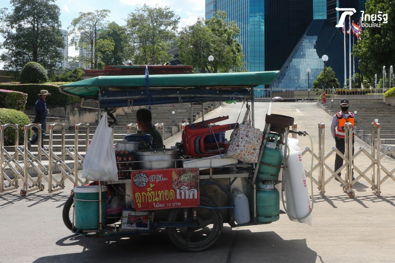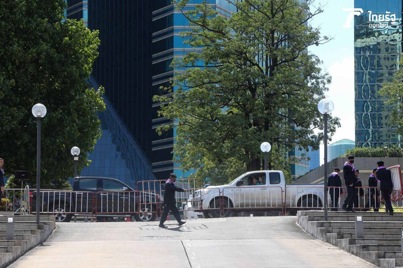 บรรยากาศก่อน "ม็อบ 25 พฤศจิกา" บริเวณด้านหน้า SCB สำนักงานใหญ่ มีการปิดรั้วทางเข้า ด้านมวลชนทยอยมาจับจองพื้นที่ก่อนถึงเวลานัดชุมนุม