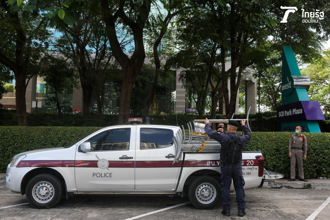 เวลา 13.30 น. วันที่ 25 พ.ย.63 ผู้สื่อข่าวรายงานบรรยากาศบริเวณด้านหน้าธนาคารไทยพาณิชย์ (SCB) สำนักงานใหญ่ ถ.รัชดาภิเษก หลังประกาศหยุดทำการ 1 วัน ได้มีการปิดรั้วบริเวณทางเข้าทั้งหมด