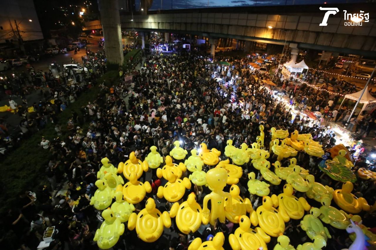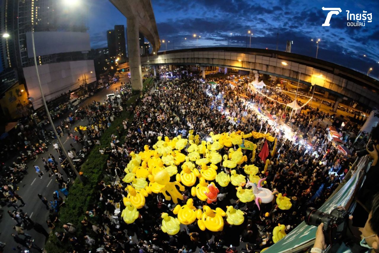 มวลชนยังเดินทางเข้าร่วมม็อบ 27 พฤศจิกา บริเวณห้าแยกลาดพร้าวต่อเนื่อง ยังมีฝูงเป็ดเหลืองเหมือนเคย ขณะในพื้นที่อยู่ระหว่างติดตั้งเวทีปราศรัย