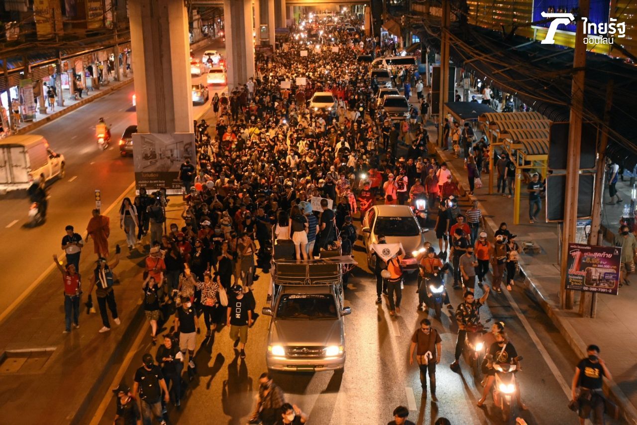 ม็อบเคลื่อนจากอิมพีเรียลสำโรง ไปชุมนุมพร้อมปราศรัยต่อที่แยกบางนา ด้าน “ธนาธร” โผล่ให้กำลังใจ ย้ำ ขั้นแรกนายกฯ ต้องลาออก ปัดออกความเห็นปมบ้านพักหลวง