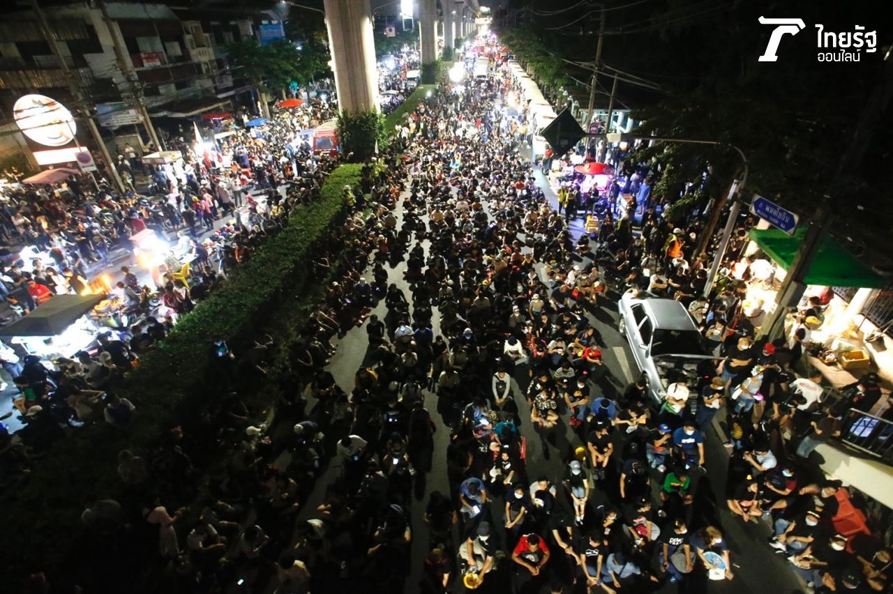 ประชาชนที่มาร่วมชุมนุมม็อบ 29 พฤศจิกา เดินเท้าเคลื่อนขบวนมาถึงกรมทหารราบที่ 11 แล้ว ด้านค่ายทหารปิดไฟมืดสนิท