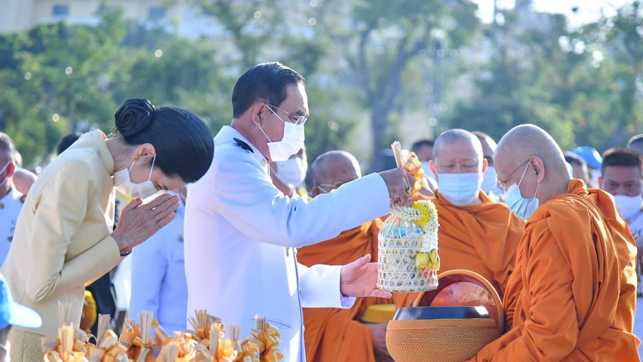 นายกฯ และภริยา เป็นประธานในพิธีสงฆ์เจริญพระพุทธมนต์และทำบุญตักบาตร เนื่องในวันคล้ายวันพระบรมราชสมภพพระบาทสมเด็จพระชนกาธิเบศร มหาภูมิพลอดุลยเดชมหาราช บรมนาถบพิตร วันชาติ และวันพ่อแห่งชาติ 5 ธันวาคม 2563