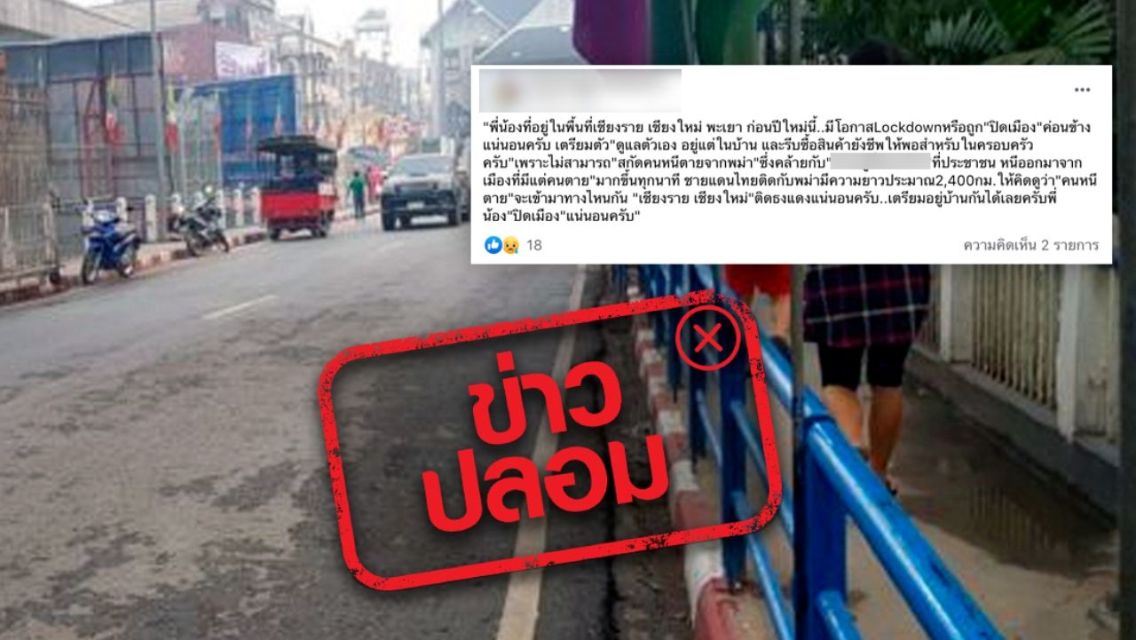 วันที่ 9 ธ.ค. 2563 ศูนย์ต่อต้านข่าวปลอม (Anti FakeNews Center) เปิดเผยว่า จากกรณีที่มีการโพสต์ข้อความทางสื่อออนไลน์ ว่า พื้นที่จังหวัดเชียงราย เชียงใหม่ และพะเยา ก่อนปีใหม่จะมีการปิดเมือง ทางชายแดนมีคนหนีตายเข้ามาจำนวนมากนั้น มีการตรวจสอบกับทางกรมควบคุมโรค กระทรวงสาธารณสุขแล้ว ชี้แจงว่าข้อความดังกล่าวไม่เป็นความจริง