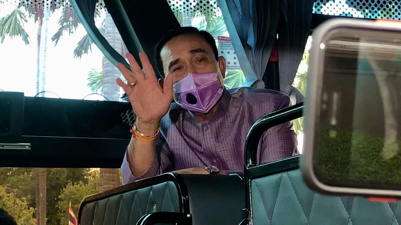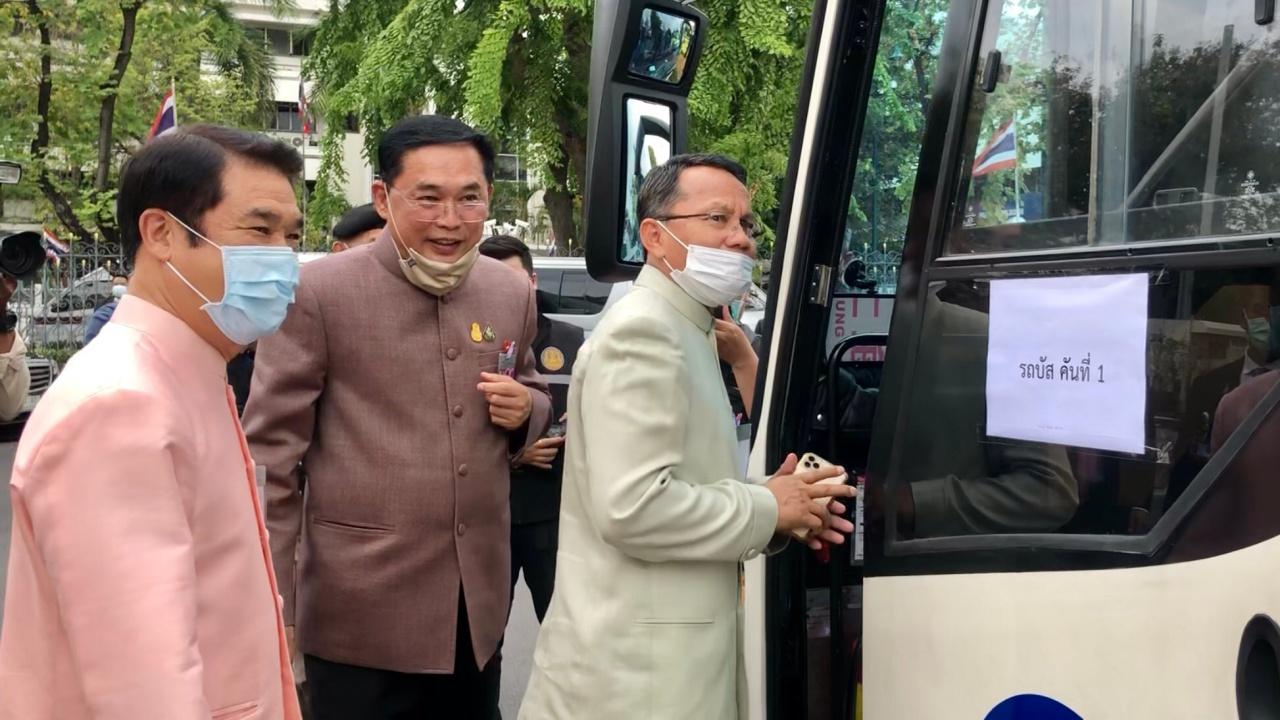จากนั้น รัฐมนตรีต่างทยอยขึ้นรถบัสที่จัดไว้ให้ รวมถึง พล.อ.ประวิตร วงษ์สุวรรณ รองนายกรัฐมนตรี และ พล.อ.อนุพงษ์ เผ่าจินดา รมว.มหาดไทย ที่ได้ขึ้นรถคันเดียวกับนายกฯ ทั้งนี้ ผู้สื่อข่าวรายงานว่า รถบัสคันที่นายกฯ ขึ้นนั้น เลขทะเบียน 34-1830 กรุงเทพมหานคร