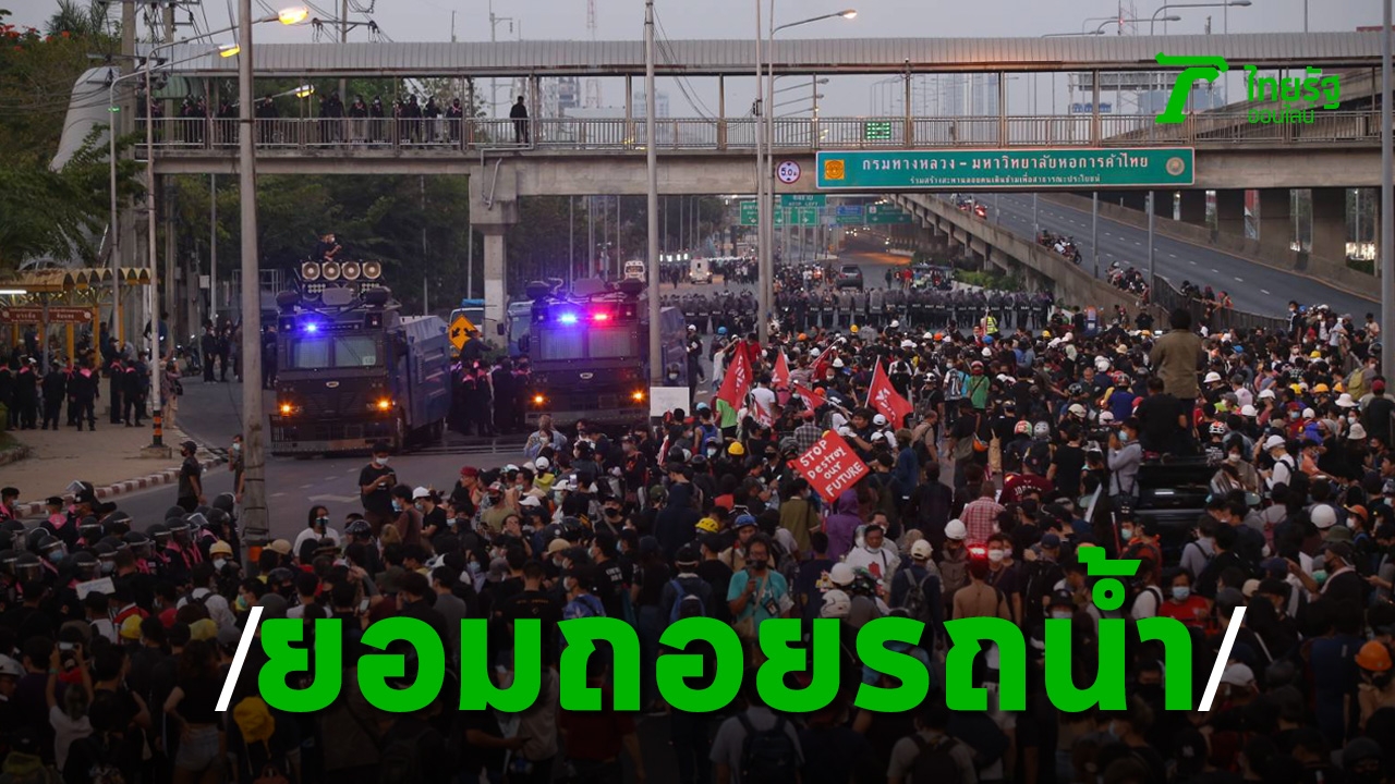 เจ้าหน้าที่ยอมเคลื่อนรถฉีดน้ำแรงดันสูง ไปหลังแนวเจ้าหน้าที่ควบคุมฝูงชน ซึ่งตั้งแนวอยู่บน ถ.วิภาวดี ใกล้ปั๊ม ข้างกรมทหารราบที่ 1