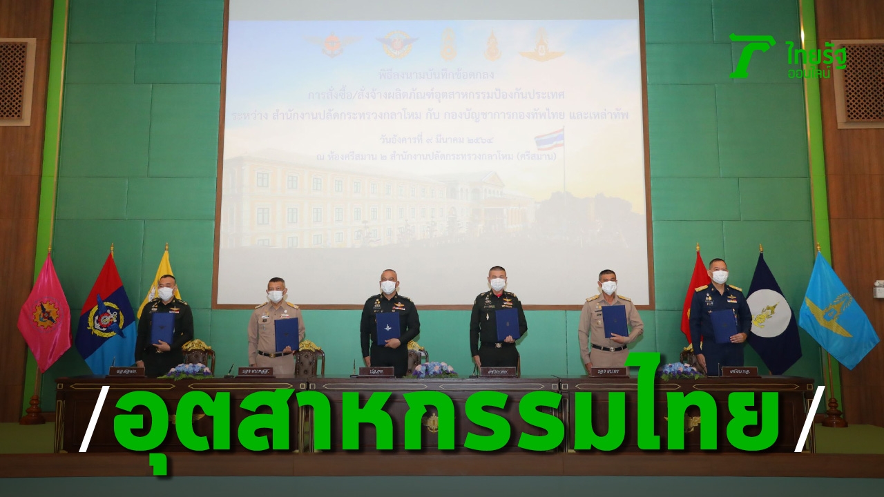 เมื่อวันที่ 9 มี.ค.64 ที่สำนักงานปลัดกระทรวงกลาโหม (ศรีสมาน) พล.อ.ณัฐ อินทรเจริญ ปลัดกระทรวงกลาโหม พร้อมด้วย ผู้แทน ผู้บัญชาการเหล่าทัพ ประกอบด้วย พล.ร.อ.ช่อฉัตร กระเทศ รองผู้บัญชาการทหารสูงสุด(รอง ผบ.ทสส.) พล.อ.ธรรมนูญ วิถี ผู้ช่วยผู้บัญชาการทหารบก(ผช.ผบ.ทบ.) พล.ร.อ.สิทธิพร มาศเกษม รองผู้บัญชาการทหารเรือ(รอง ผบ.ทร.) พล.อ.อ.ปราโมทย์ ศิริธรรมกุล ผู้ช่วยผู้บัญชาการทหารอากาศ(ผช.ผบ.ทอ.) และ พล.อ.สราวุธ รัชตะนาวิน ผู้อำนวยการศูนย์การอุตสาหกรรมป้องกันประเทศ ร่วมลงนามบันทึกข้อตกลง (MOU) การสั่งซื้อ-สั่งจ้างผลิตภัณฑ์อุตสาหกรรมป้องกันประเทศ โดยเป็นความร่วมมือระหว่าง สำนักงานปลัดกระทรวงกลาโหม ร่วมกับ กองบัญชาการกองทัพไทย กองทัพบก กองทัพเรือ และกองทัพอากาศ