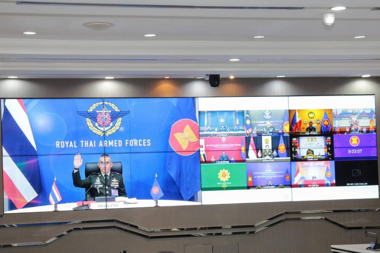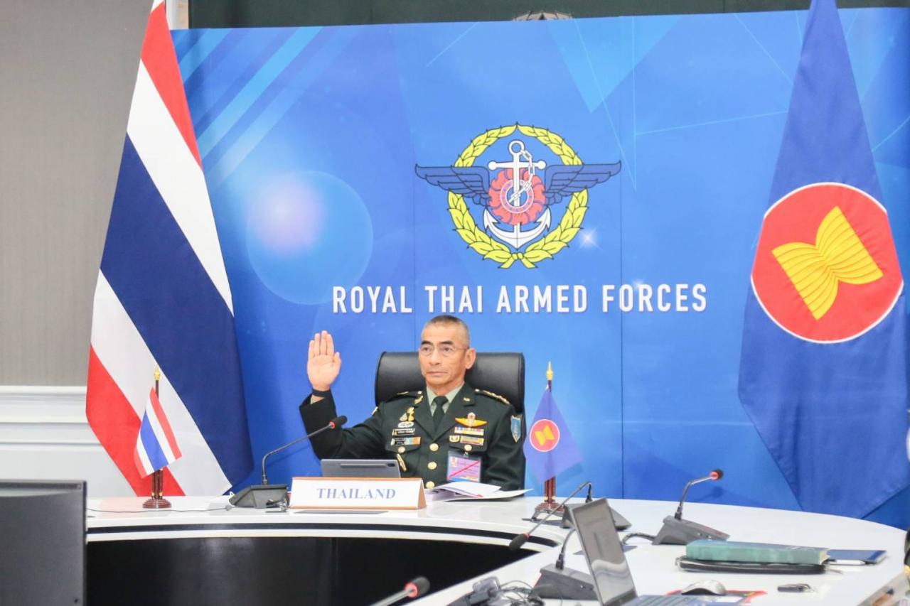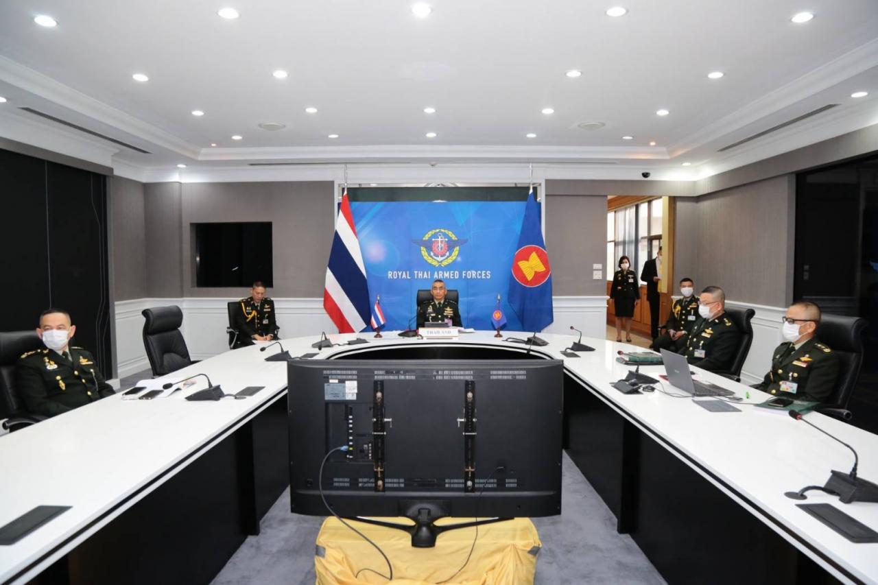 "บิ๊กแก้ว" ร่วมประชุม ผบ.ทหารสูงสุดอาเซียน ครั้งที่ 18 ผ่านระบบการประชุมทางไกล โดยมีสมาชิก 10 ประเทศ หารือการเสริมสร้างความมั่นคงในภูมิภาค รับมือการแพร่ระบาดโรคโควิด-19 ภัยคุกคามรูปแบบใหม่ อาชญากรรมข้ามชาติ การก่อการร้าย โจรสลัด โดยต้องร่วมมือแลกเปลี่ยนข้อมูลข่าวสาร การฝึก และการเตรียมพร้อมในทุกมิติ