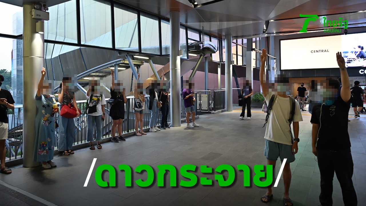 ม็อบทำดาวกระจาย ชูสามนิ้ว-เคารพธงชาติ-ร้องปล่อยเพื่อนเรา 14 แกนนำ ถูก ม.112 และอวยพรวันเกิดนายกฯ บีทีเอสห้าแยกลาดพร้าว-อนุสาวรีย์ชัยสมรภูมิ ก่อนแยกย้ายกลับ ไร้ความรุนแรง