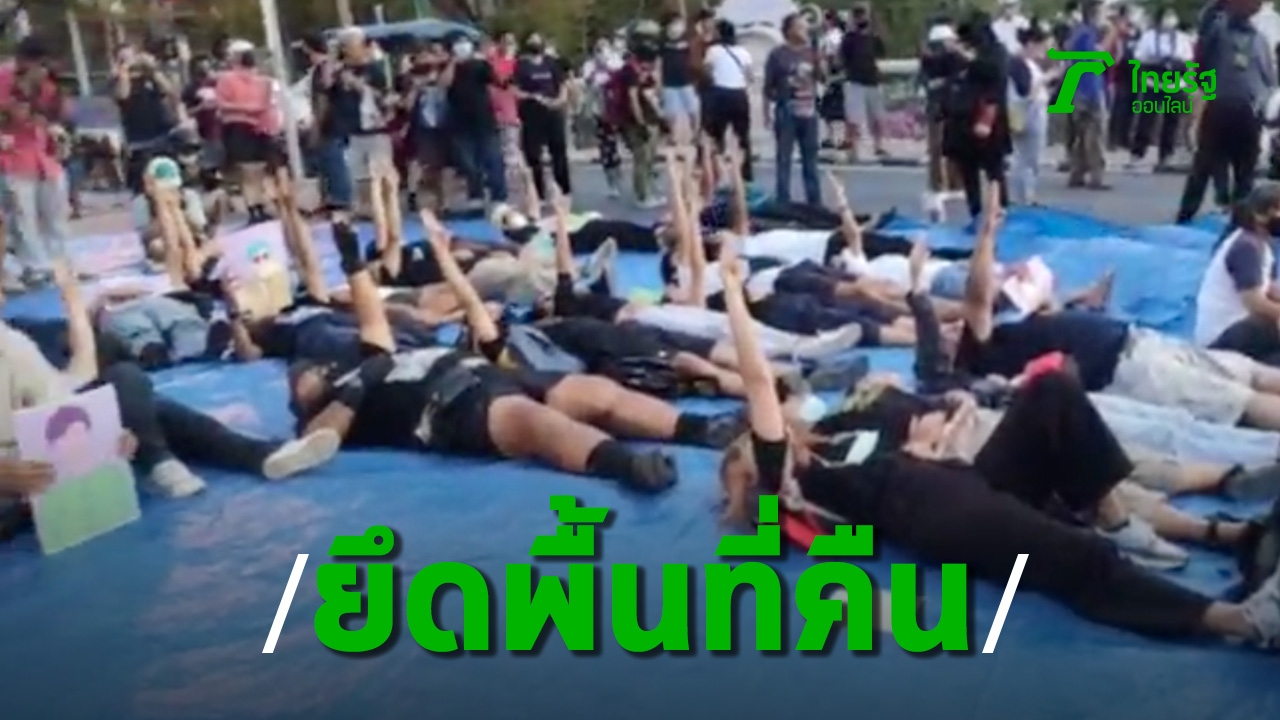 ตำรวจควบคุมฝูงชน เข้าสลายการชุมนุม "หมู่บ้านทะลุฟ้า" รอบ 2 พร้อมยึดพื้นที่คืนแล้ว โดยกลุ่มมวลชนได้นอนรอพร้อมชู 3 นิ้ว เพื่อแสดงสันติวิธี