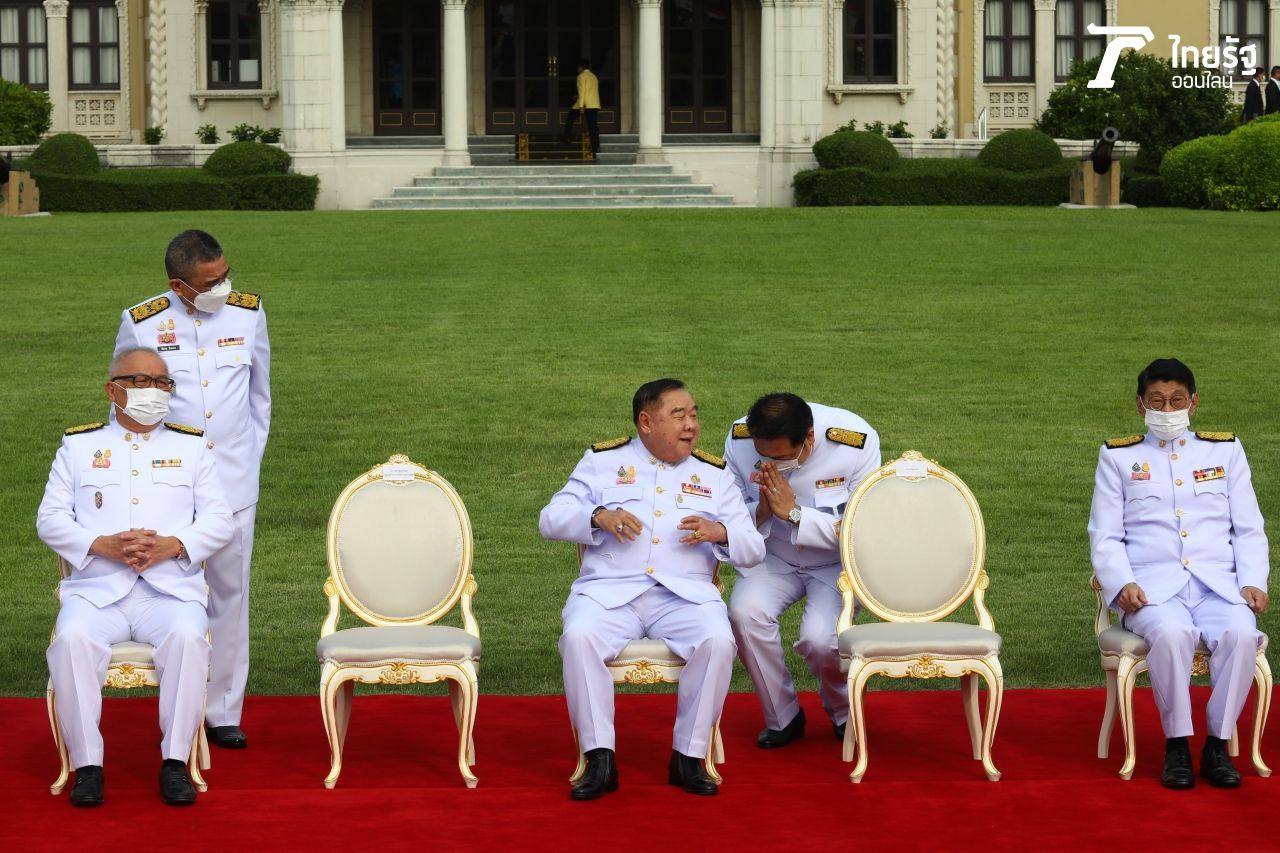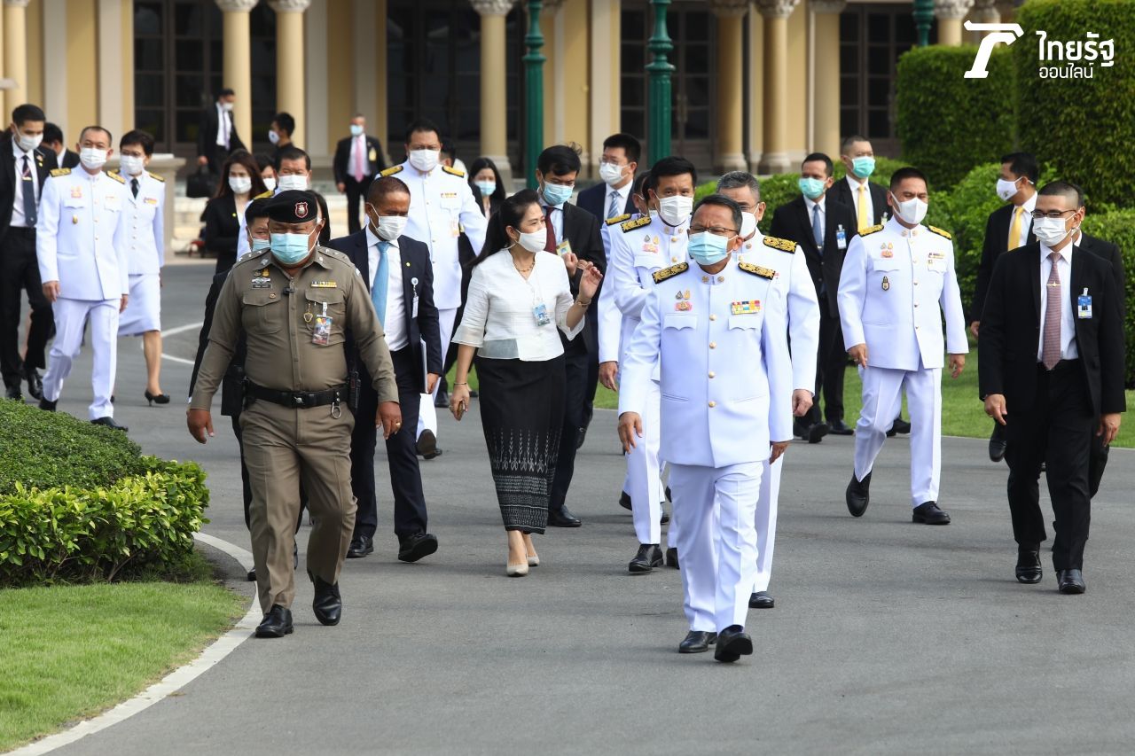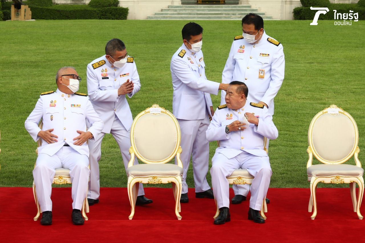 วันที่ 30 มี.ค. 2564 เมื่อช่วงเช้าที่ผ่านมาก่อนการประชุมคณะรัฐมนตรี (ครม.) พล.อ.ประยุทธ์ จันทร์โอชา นายกรัฐมนตรีและรัฐมนตรีว่าการกระทรวงกลาโหม นำ ครม.รวมทั้งสิ้น 35 คน ร่วมถ่ายภาพหมู่ ครม.ประยุทธ์ 2/4 บริเวณสนามหญ้าหน้าตึกไทยคู่ฟ้า ทำเนียบรัฐบาล โดยวันที่เป็นการประชุม ครม.นัดแรกของรัฐมนตรีใหม่ด้วย ขณะที่บรรยากาศเป็นไปด้วยความชื่นมื่น นายกรัฐมนตรี รองนายกรัฐมนตรี และรัฐมนตรีมีสีหน้ายิ้มแย้ม.