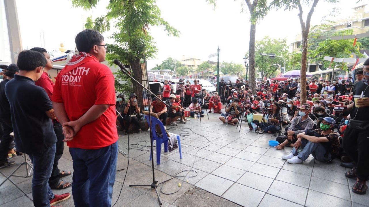 เมื่อเดินทางมาถึงในเวลาประมาณ 15:30 น. ผู้ชุมนุมที่ทำกิจกรรมทำบุญนึกถึง วีรชน 10 เมษายนที่นำโดย นายณัฐวุฒิใสยเกื้อ อดีตแกนนำ นปช.ประกาศยุติการชุมนุม มวลชนบางส่วนได้เดินเท้ามาร่วมทำกิจกรรมกับ กลุ่มราษฎรนนทบุรี กลุ่มรามคำแหงเพื่อประชาธิปไตย และกลุ่มอาชีวะเพื่อประชาชนปกป้องประชาธิปไตย ได้ตั้งเวทีปราศรัยชั่วคราว โดยมีแกนนำกลุ่มสลับกันขึ้นปราศรัยถึงข้อเรียกร้องทั้ง 3 ข้อ และเรียกร้องให้ปล่อยตัวเพื่อนของพวกเขา ที่ตัวยังถูกคุมขังอยู่ที่เรือนจำพิเศษกรุงเทพมหานคร และมีการนำป้ายผ้ามาเขียนข้อความ และติดริบบิ้นสีแดง เป็นการรำลึกถึงวีรชนที่เสียสละชีวิตจากเหตุการณ์สลายการชุมนุม ครั้งนั้น