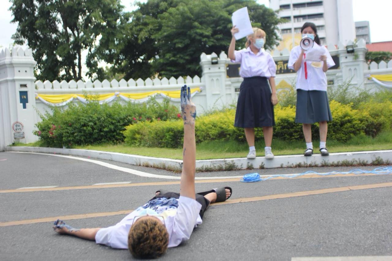 ในวันเดียวกัน กลุ่มสหภาพนักเรียน มีการนัดชุมนุมกันที่หน้ากระทรวงศึกษาธิการ เพื่อแสดงออกเชิงสัญลักษณ์ผ่าน Performance Art เพื่อแสดงถึงจุดยืนต่อต้านการรัฐประหาร ความชาตินิยม และร่าง พ.ร.บ.การศึกษา ฉบับเผด็จการ ที่กำลังจะเข้าสภาเร็วๆ นี้ ในโอกาสครบรอบ 7 ปีรัฐประหาร 22 พ.ค. ใช้เวลาในการจัดกิจกรรมประมาณ 20 นาที โดยมีเจ้าหน้าที่ตำรวจ สน.นางเลิ้ง ทั้งในและนอกเครื่องแบบปักหลักดูแลความเรียบร้อย