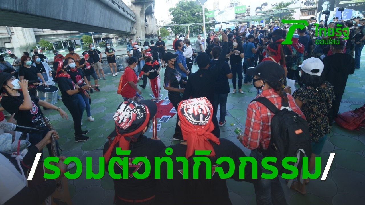 มวลชนรวมตัวบนสกายวอล์กปทุมวัน ในวันครบรอบ 7 ปีรัฐประหาร ตำรวจแจ้งรวมตัวผิด พ.ร.ก.ฉุกเฉิน-พ.ร.บ.โรคติดต่อ ด้านกลุ่มสหภาพนักเรียนแสดงเชิงสัญลักษณ์ออกหน้า ก.ศึกษาธิการ