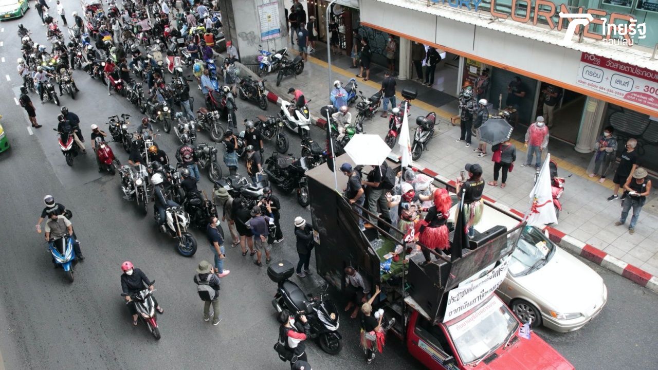 อย่างไรก็ตาม ก่อนหน้านี้ มีรายงานว่า กลุ่ม Motorcycle Mob ร่วมกับ กลุ่มทะลุฟ้า ร่วมแห่เทียน โดยกลุ่มผู้ชุมนุม มีการตั้งขบวนโดยมีรถ จยย. รถกระบะ จำนวน 4 คัน แต่ละคันบรรทุกต้นเทียนคันละ 1 ต้น ซึ่งเทียนต้นที่ 4 บรรทุกโดยรถกระบะอีก 1 คัน กลุ่มได้นำภาพ พล.อ.ประยุทธ์ มาประดับต้นเทียนด้วย ตามด้วยขบวนนางรำ นำหน้ารถกระบะติดเครื่องขยายเสียง (รถแห่) จำนวน 1 คัน รถบรรทุกหกล้อติดเครื่องขยายเสียง จำนวน 1 คัน ซึ่งเป็นเวทีปราศรัยหลักมีแกนนำและตัวแทนสลับปราศรัยโจมตี นายกรัฐมนตรี รวมทั้งเชิญชวนมวลชนออกมาร่วมขบวนปิดท้ายขบวนด้วยรถยนต์ ทั้งนี้การจราจรใช้ได้ 1 ช่องจราจร
