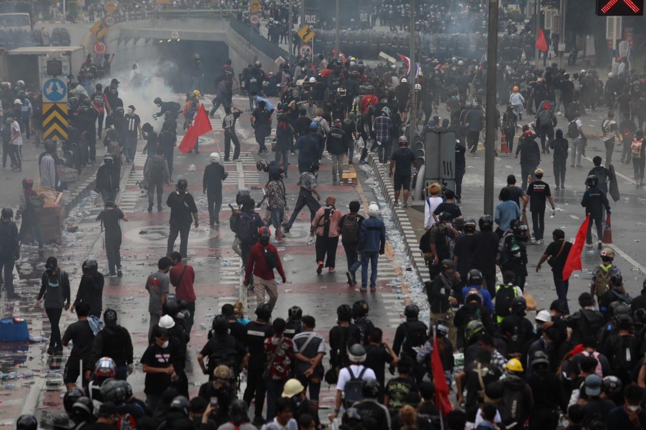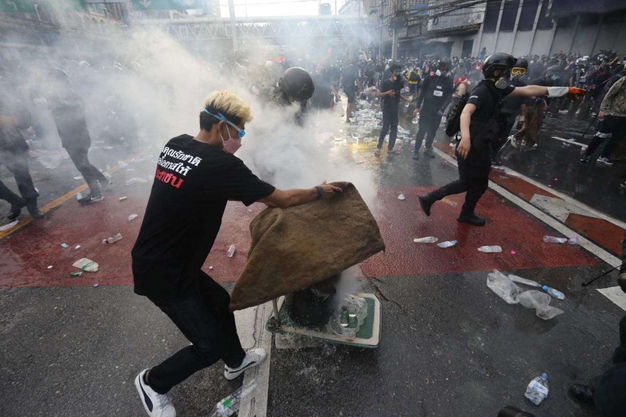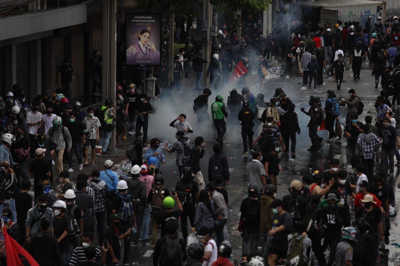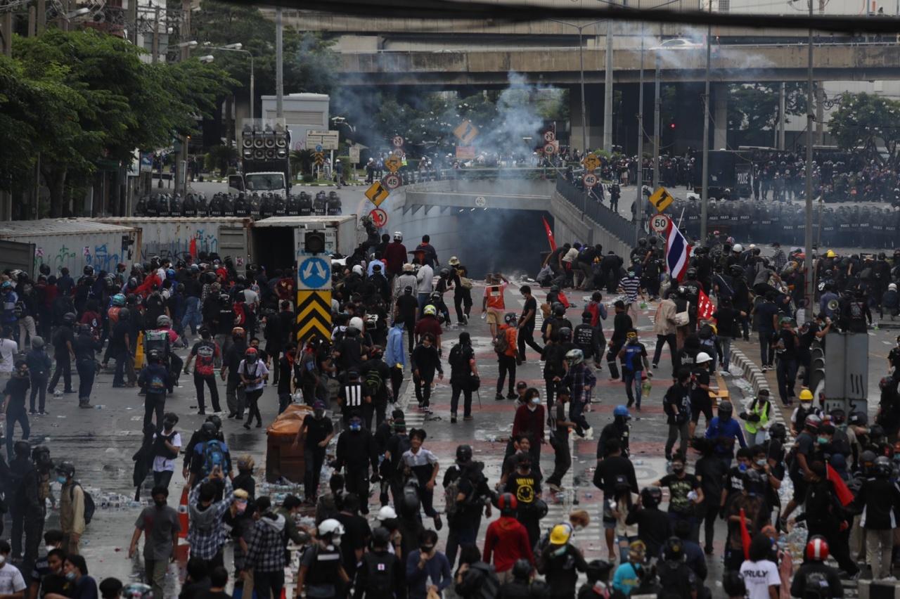 เจ้าหน้าที่ควบคุมฝูงชน ฉีดน้ำแรงดันสูงเข้าใส่กลุ่ม "เยาวชนปลดแอก" พร้อมยิงแก๊สน้ำตาและกระสุนยาง อย่างต่อเนื่อง ขณะที่ผู้ชุมนุมประกาศให้มวลชนถอยร่นไปที่อนุสาวรีย์ชัยสมรภูมิ เพื่อตั้งหลักแล้ว