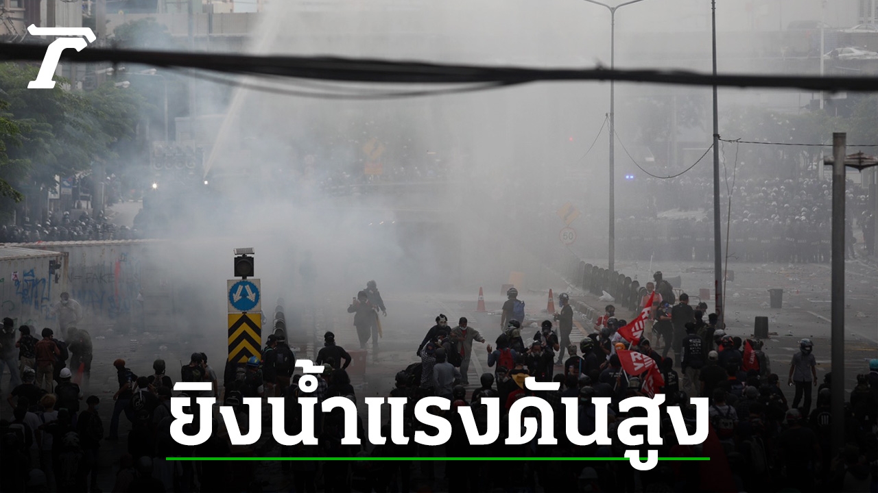 เวลา 17.17 น. เจ้าหน้าที่ได้ฉีดน้ำแรงดันสูงเข้าใส่กลุ่มผู้ชุมนุม พร้อมยิงแก๊สน้ำตา และกระสุนยางอย่างต่อเนื่อง เวลา 17.19 น. เจ้าหน้าที่ได้ประกาศจะมีการใช้น้ำผสมแก๊สยิงเข้าใส่กลุ่มผู้ชุมนุม เพื่อผลักดันมวลชนให้ออกจากพื้นที่
