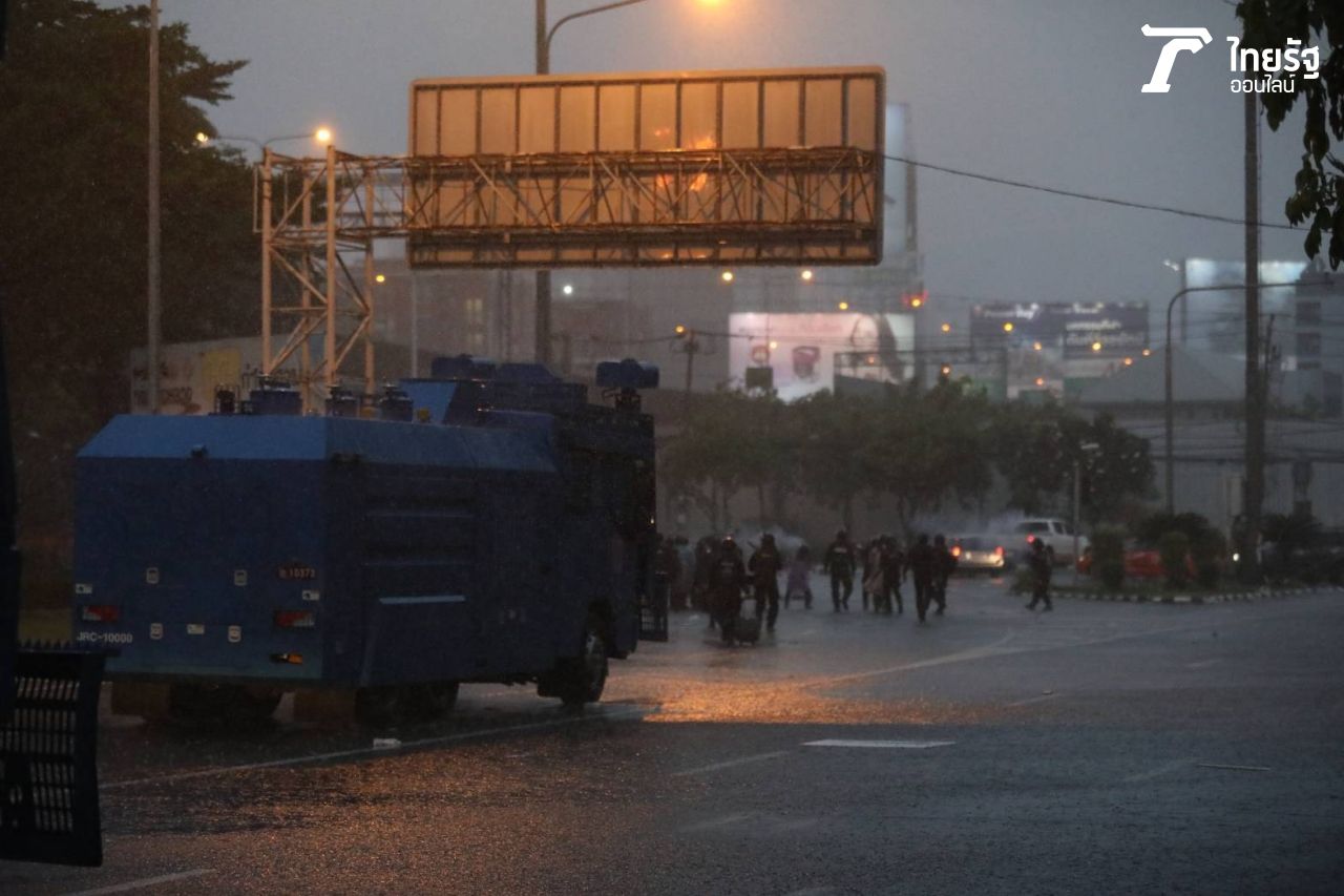 มวลชนกระจายออกนอกพื้นที่ เปิดแนวตู้คอนเทนเนอร์ กำลังควบคุมฝูงชนพร้อมจีโน่ยึดคืนแยกสามเหลี่ยมดินแดง ประกาศ ใครฝ่าฝืนจับกุมทันที
