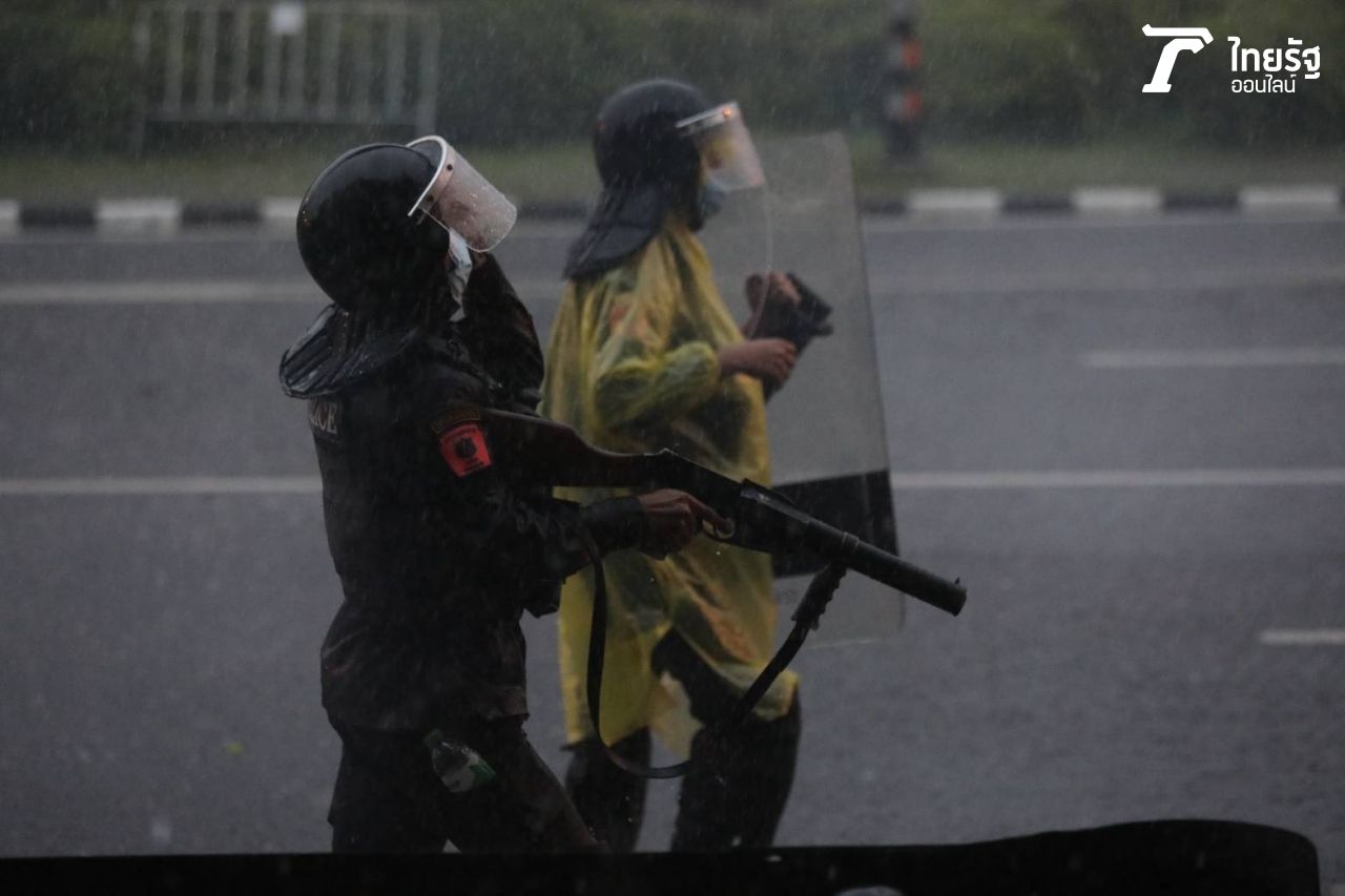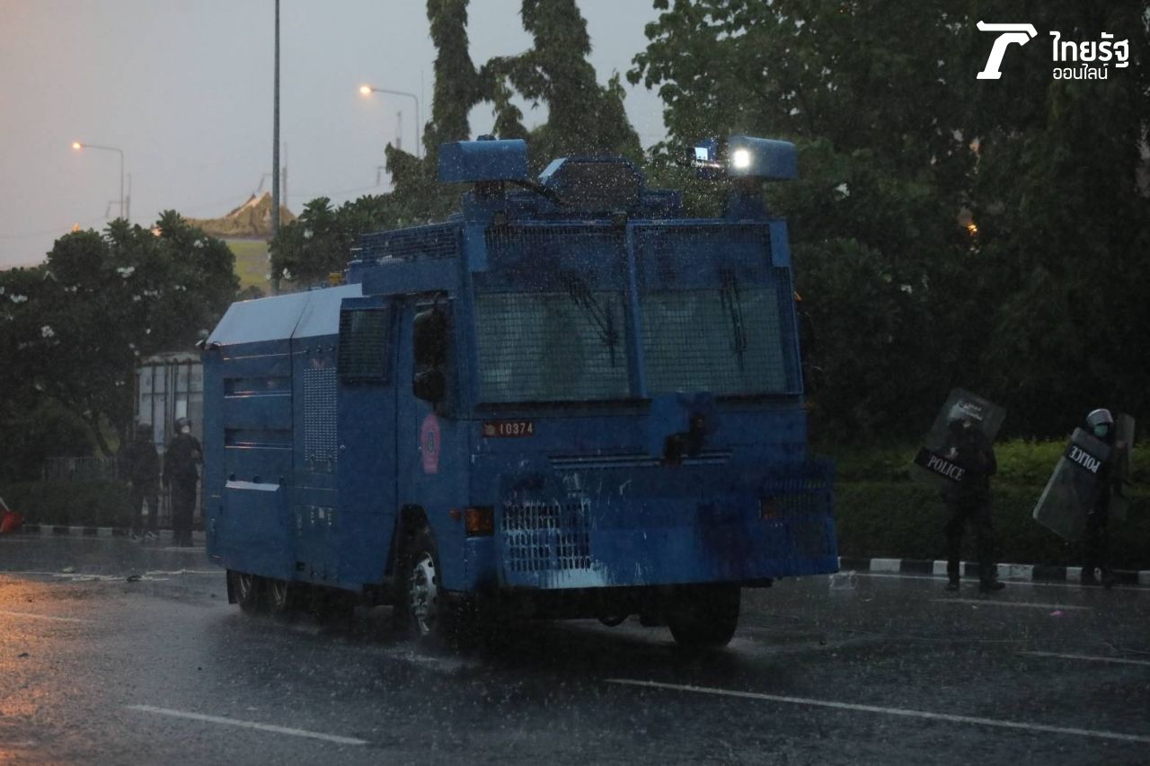 เมื่อเวลา 18.22 น. วันที่ 13 ส.ค. 2564 ผู้สื่อข่าวรายงานสถานการณ์การชุมนุมภายหลังกลุ่มทะลุฟ้า ประกาศยุติการชุมนุม แต่ยังคงมีมวลชนอยู่ ล่าสุดเจ้าหน้าที่ยกเอาตู้คอนเทนเนอร์ออก พร้อมส่งกำลังตำรวจควบคุมฝูงชนออกมา และสั่งให้จับกุมผู้ชุมนุมในบริเวณแยกสามเหลี่ยมดินแดง พร้อมทั้งนำรถฉีดน้ำแรงดันสูง (จีโน่) ออกมาด้วย 2 คัน รวมถึงมีการยิงกระสุนยางและแก๊สน้ำตาท่ามกลางฝนที่ตกลงมาอย่างหนัก