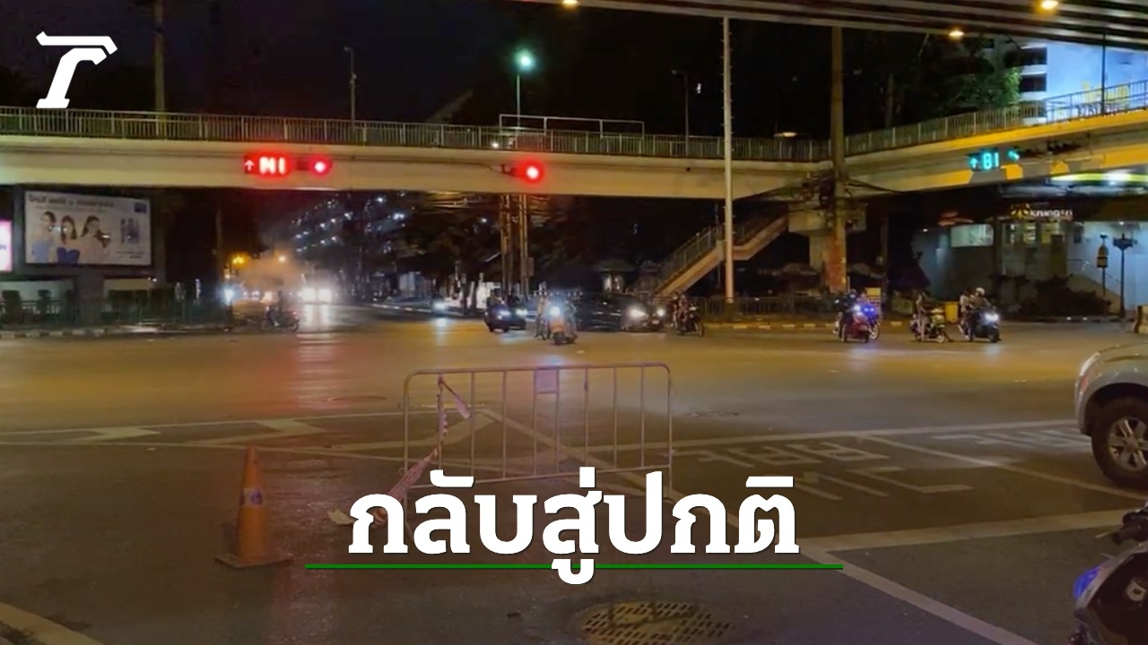 แยก "ประชาสงเคราะห์" ถนนดินแดงเริ่มสงบ กลุ่มผู้ชุมนุมเริ่มถอยออกจากพื้นที่ หลัง 4 ทุ่ม ทิ้งกองไฟที่ถูกจุดอยู่บนถนน สถานการณ์เริ่มเข้าสู่ภาวะปกติ