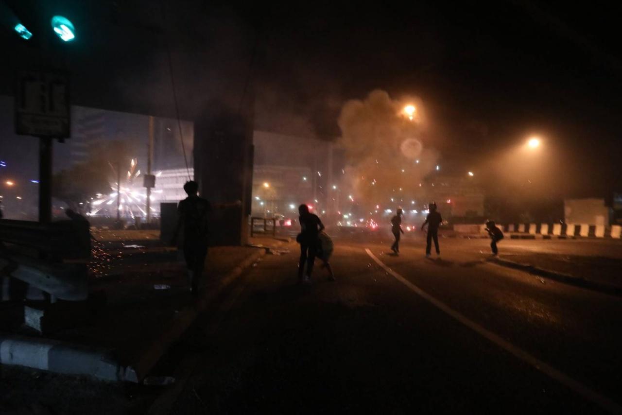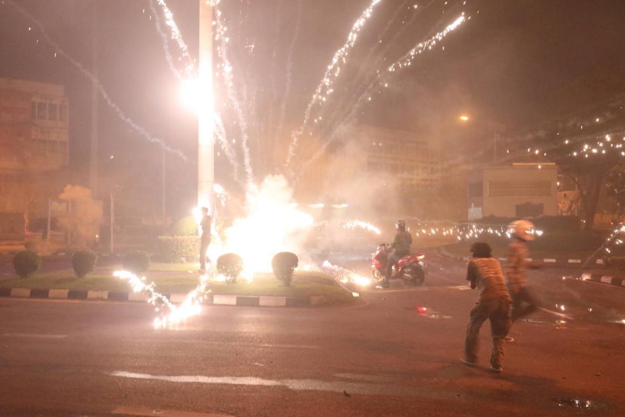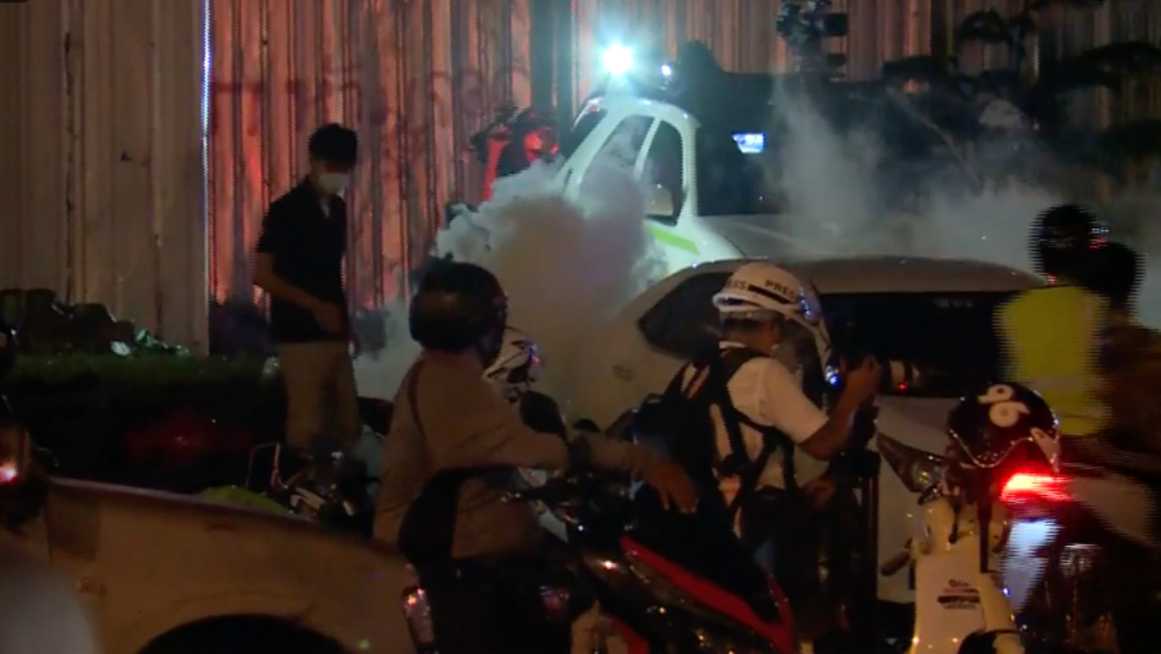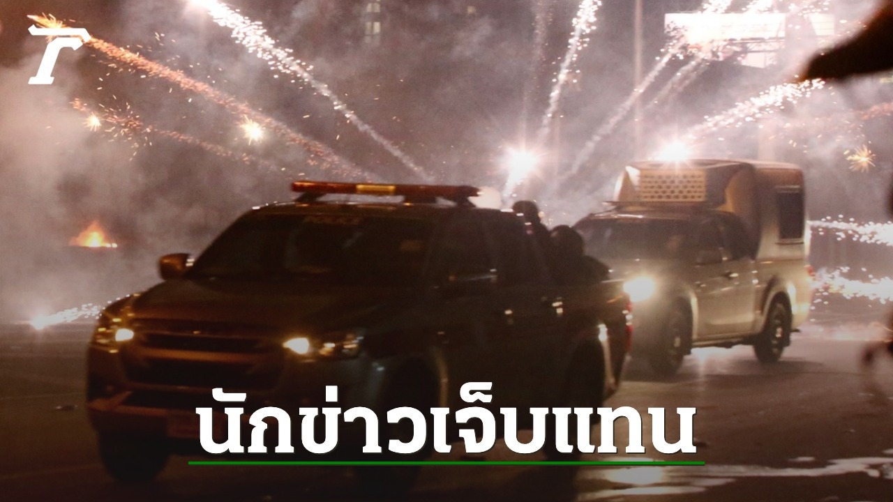 ผู้ชุมนุมจุดพลุ ยิงใส่รถตำรวจ คฝ. ที่เคลื่อนผ่านสามแยกดินแดง ไปทางถนนวิภาวดีฯ พลาดถูกกลุ่มนักข่าวเจ็บ