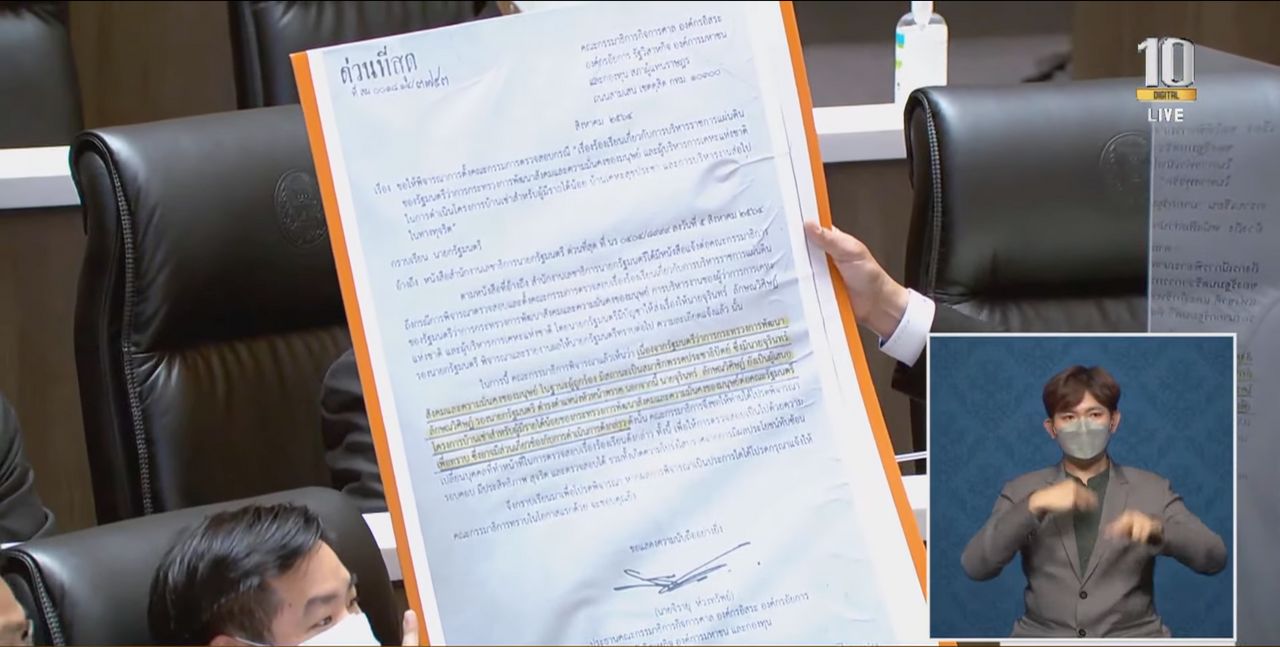 ต่อมานายกรัฐมนตรีมีบัญชาให้ นายจุรินทร์ ลักษณวิศิษฏ์ รองนายกรัฐมนตรีและรัฐมนตรีว่าการกระทรวงพาณิชย์ ซึ่งกำกับดูแลกระทรวงการพัฒนาสังคมและความมั่นคงของมนุษย์ พิจารณาและรายงาน เน้นความโปร่งใส ตรวจสอบได้ โดยระหว่างนั้น นายศุภชัย โพธิ์สุ รองประธานสภาผู้แทนราษฎร ทำหน้าที่ประธานการประชุม บอกให้ นายจิรายุ อย่าใช้อารมณ์มากไป เรียกเสียงหัวเราะในสภาฯ จากนั้น นายจิรายุ อภิปรายต่อไปว่า นายกรัฐมนตรีตั้งหัวหน้าพรรคประชาธิปัตย์ ตรวจสอบ นายจุติ เพราะสาเหตุใด จึงส่งไปขอเปลี่ยนตัวกรรมการ ได้รับตอบกลับมาว่าสำนักเลขาธิการนายากรัฐมนตรีเรียนนายกรัฐมนตรีแล้ว แต่ส่วนตัวเชื่อว่านายกรัฐมนตรีไม่รู้ หรือรู้แต่กลัวพรรคร่วมรัฐบาลไม่ยกมือให้ และหากตนเองในฐานะประธานกรรมาธิการไม่ทำ ก็ถือว่าละเว้นในฐานะเจ้าพนักงาน และยังกล่าวไปถึงเรื่องการประมูลรถไฟสายสีส้มเกิดความเสียหายกว่า 40,000 ล้านบาทด้วย