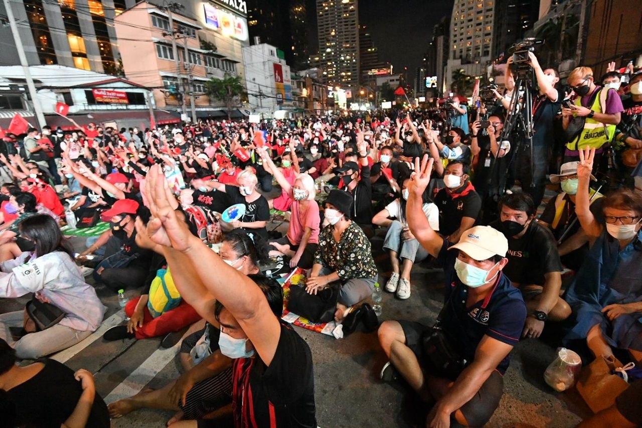 เวลา 19.20 น. วันที่ 5 กันยายน 2564 ที่แยกอโศก นายณัฐวุฒิ ใสยเกื้อ เลขาธิการกลุ่มแนวร่วมประชาธิปไตยต่อต้านเผด็จการแห่งชาติ หรือ นปช. ได้ขึ้นเวทีปราศรัย โดยกล่าวว่า ในขณะที่คนไทยกำลังเหนื่อยหน่ายกับบทละครดราม่าในสภาฯ เหมือนการต่อสู้ระหว่างโรคร้าย ขออย่าให้พี่น้องประชาชนตกใจหรือเผลอใจเชียร์ข้างไหน เพราะสุดท้ายแล้วก็ตกลงอยู่ด้วยกันต่อ แต่ในวันนี้ประชาชนจะโหวตให้สู้กันต่อไป