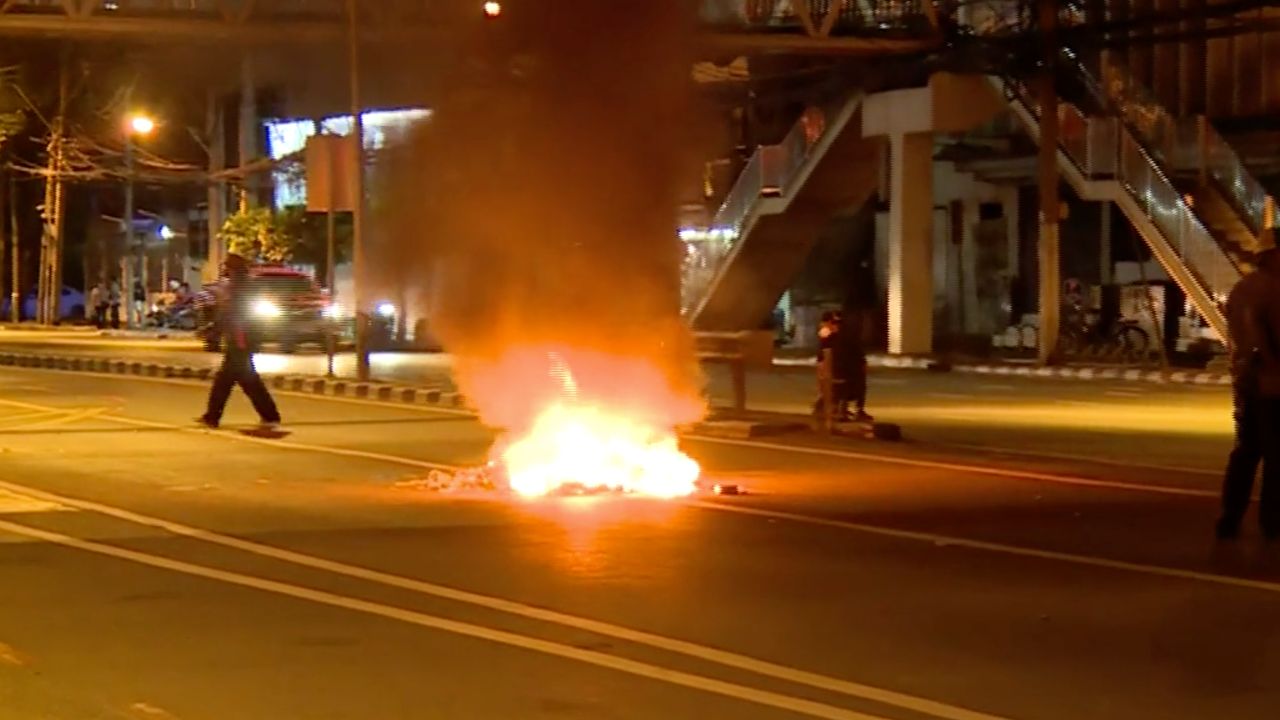 กลุ่มม็อบ ทะลุแก๊ซ ยังรวมตัวสามเหลี่ยมดินแดง แม้หลังผ่านช่วงเคอร์ฟิวมาแล้วกว่า 1 ชั่วโมง ยังคงได้ยินเสียงประทัดและระเบิดปิงปอง ดังเป็นระยะ