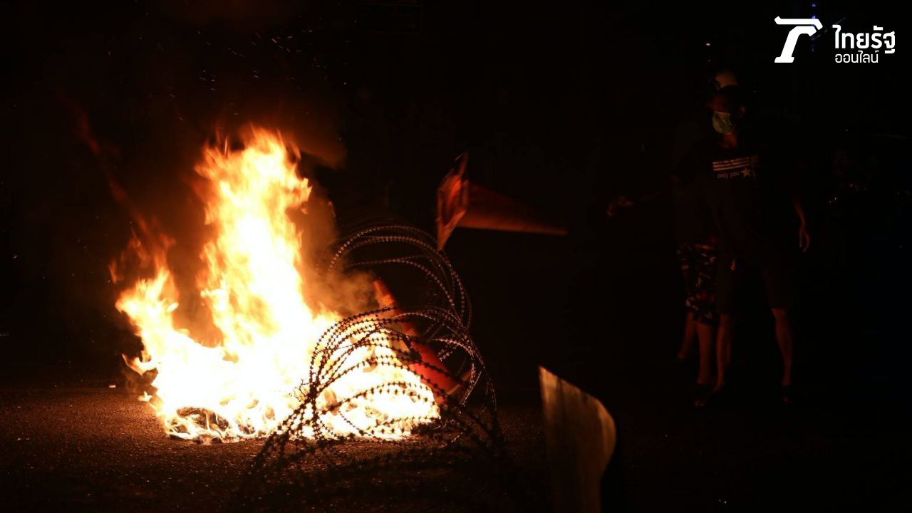 วันที่ 7 ก.ย. เมื่อเวลา 21.09 น. ที่บริเวณสามเหลี่ยมดินแดง ผู้สื่อข่าวรายงานว่า ภายหลัง กลุ่มผู้ชุมนุมทะลุแก๊ซ ได้ถอยกลับมายังซอยด้านหน้าแฟลตดินแดงใกล้กับใต้ทางด่วนดินแดงแล้ว โดยจัดดังกล่าว ไฟฟ้าสาธารณะได้ดับมืดลง ท่ามกลางฝนที่ยังตกลงมาอย่างต่อเนื่อง ซึ่งกลุ่มผู้ชุมนุมได้จัดไฟเผายางรถยนต์กลางถนน ทำให้เกิดแสงสว่างด้วย อย่างไรก็ตาม กลุ่มผู้ชุมนุมยังได้เฝ้าสังเกตการณ์ว่าจะมีความเคลื่อนไหวจากเจ้าหน้าที่ตำรวจอีกหรือไม่