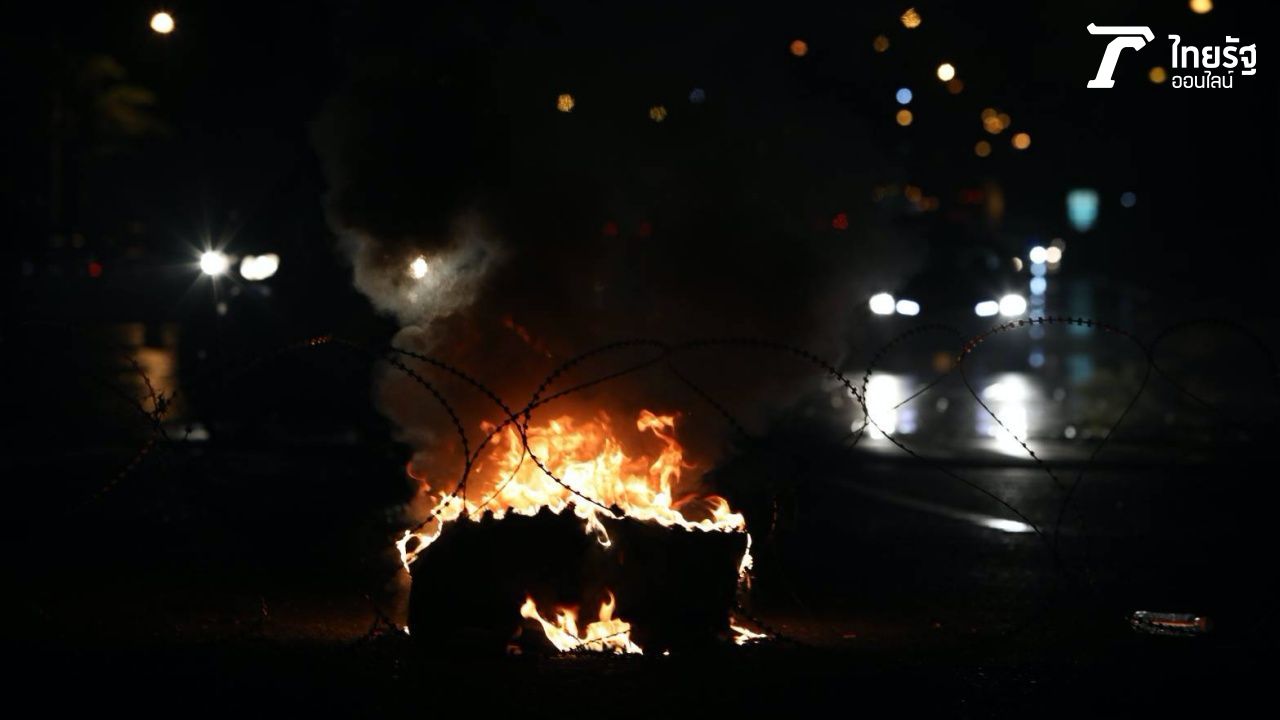 อย่างไรก็ตาม ยังปรากฏพบเห็นซากรถจักรยานยนต์ของเจ้าหน้าที่ตำรวจที่ถูกผู้ชุมนุมเผาไหม้ อยู่กลางถนนด้วย