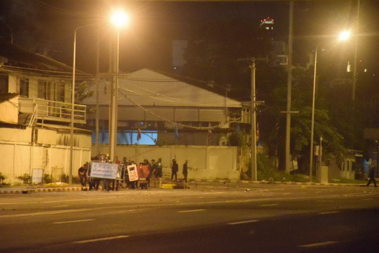 ขณะที่ค่ำคืนนี้ คฝ.ปรับยุทธวิธีนำกำลังพร้อมด้วยแก๊สน้ำตา และปืนยิงกระสุนยาง ขึ้นไปสแตนด์บายบนสะพานลอยคนข้าม เพื่อโต้ตอบการกระทำของผู้ชุมนุม ทำให้ขณะนี้ยังมีเสียงดัง กลุ่มควัน และการปะทะเกิดขึ้นเป็นระยะๆ ชาวบ้านที่สัญจรผ่านต่างตกใจต้องกลับรถล่าถอยย้อนศรไปเพื่อหาเส้นทางใหม่