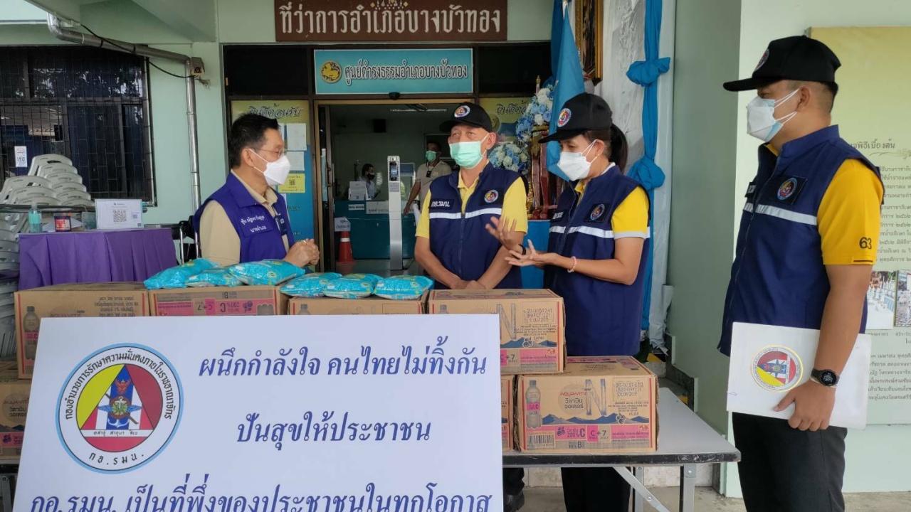 พล.ต.ธนาธิป กล่าวต่อว่า อีกทั้งเพื่อสร้างขวัญและกำลังใจให้กับบุคลากรทางการแพทย์และเจ้าหน้าที่ด่านหน้า ที่ปฏิบัติหน้าที่ช่วยเหลือผู้ป่วยติดเชื้อโควิด-19 โดยได้บูรณาการประสานความร่วมมือกับหน่วยงานภาครัฐและภาคเอกชน, มวลชน กอ.รมน. และประชาชนทั่วไป ได้แก่ สมาคมกำลังสำรองรักษาดินแดนไทย, การท่าอากาศยานสุวรรณภูมิ, บริษัทอู่กรุงเทพ จำกัด, ผู้ประกอบการด้านการโรงแรม, สมาคมอุตสาหกรรมขายตรงไทย, การประปาส่วนภูมิภาค, บริษัท ศรีนานาพรมาร์เก็ตติ้ง จำกัด (มหาชน), มูลนิธิ ทสปช., วัดเทพศิรินทราวาสราชวรวิหาร และมวลชน กอ.รมน. สนับสนุนสิ่งของบริจาคทั้งเครื่องอุปโภคและบริโภค และสิ่งของจำเป็นต่อการดำรงชีพ เช่น ข้าวสาร, น้ำดื่มวิตามินวอเตอร์, ผ้าปูที่นอน, หน้ากากอนามัย, ชุด PPE, เจลแอลกอฮอล์และสเปรย์แอลกอฮอล์ เพื่อนำไปแจกจ่ายให้กับหน่วยงานทางการแพทย์ ณ ศูนย์พักคอยช่วยเหลือ ผู้ติดเชื้อโควิด-19, โรงพยาบาลสนาม และประชาชนที่ได้รับความเดือดร้อน ในพื้นที่กรุงเทพฯ และปริมณฑล